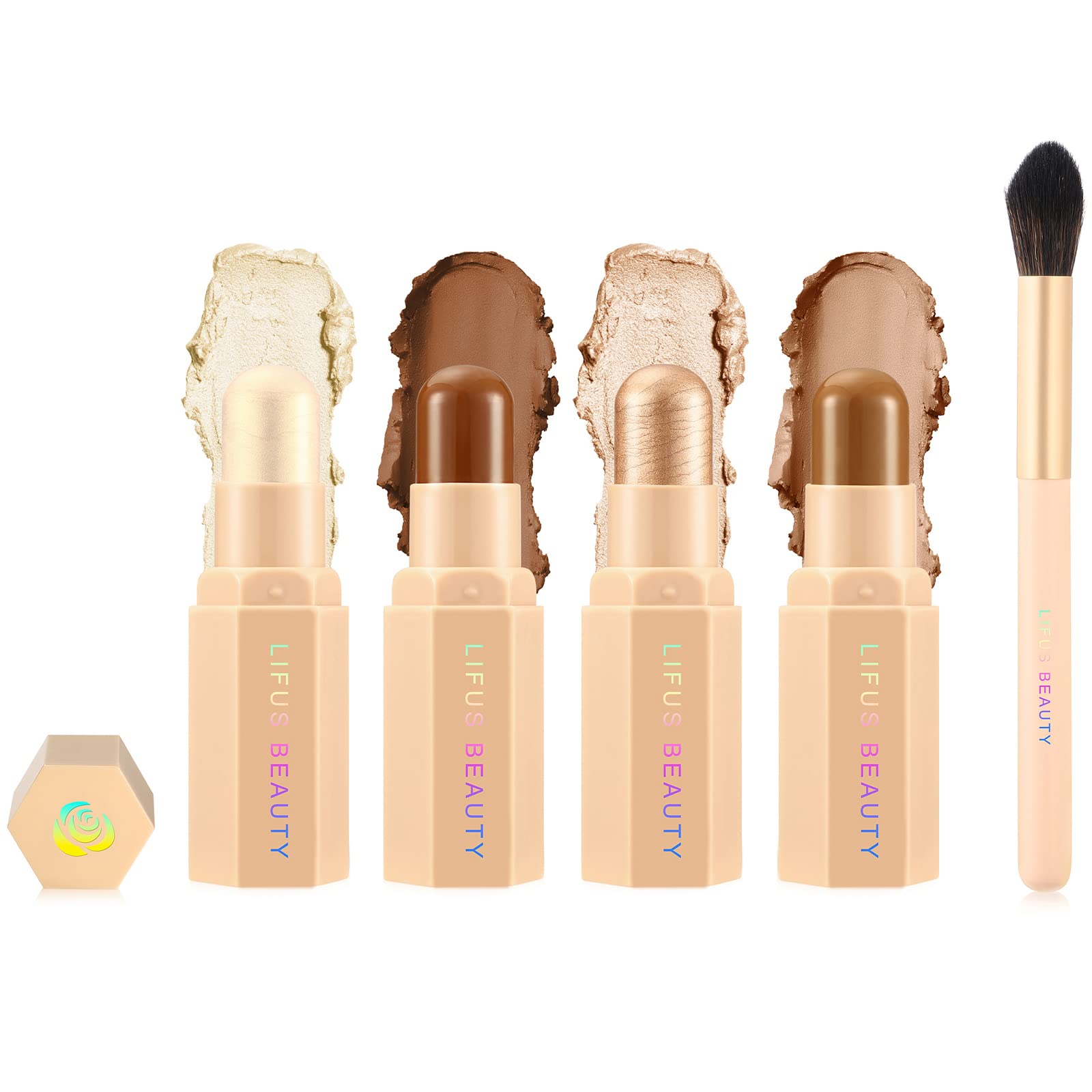 - [Highlighter Contour Makeup stick] - Countour highlight stick has a silky, lightweight, buttery smooth formula that blends seamlessly onto your skin! The makeup contour and makeup highlighter create the illusion of a sculpted, defined face in (almost) no time.