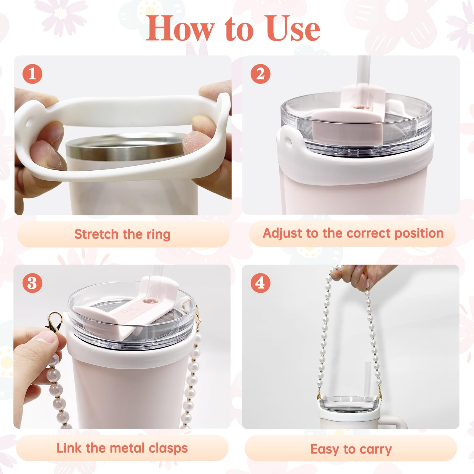 - ❤【Beautiful Pearl Design】Our water bottle sling is made of beautiful pearls with delicate lobster clasp and is handmade with exquisite workmanship. Not just for carrying, this fashionable water bottle handle is also a perfect decoration for your bottle.