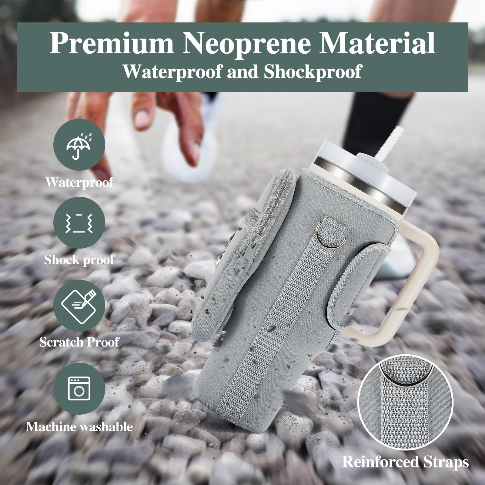 linmaya Water Bottle Carrier Bag with Phone Pocket for Stanley Cup 40/30oz,Insulated Neoprene Water Bottle Holder Cross-boday Bag with Adjustable Shoulder & Handheld Strap Stanley Cup Accessories