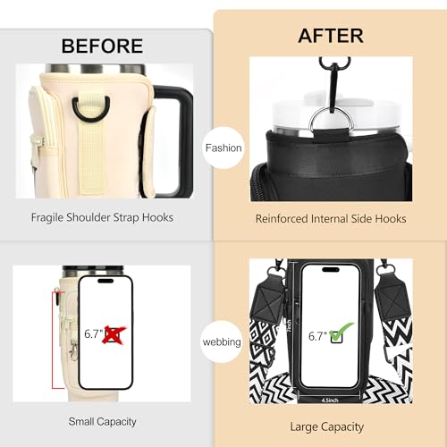 - 【High-Quality Neoprene Material】: Crafted from premium neoprene material, lightweight and soft water bottle holder provides superior protection against scratches and impacts, all while offering shock-absorbing and noise-reducing properties.