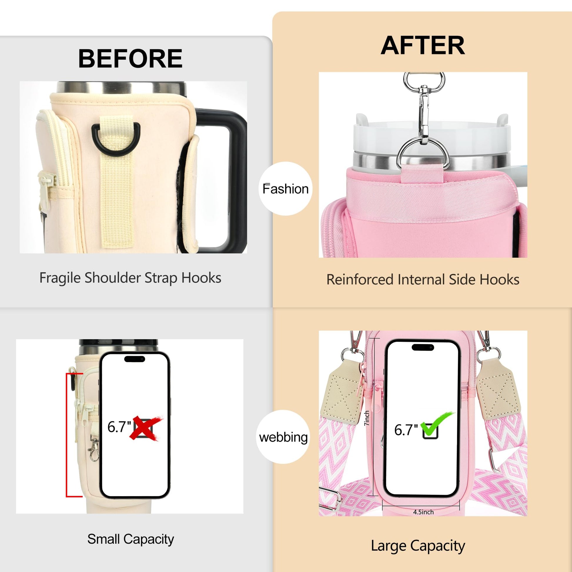 - 【High-Quality Neoprene Material】: Crafted from premium neoprene material, lightweight and soft water bottle holder provides superior protection against scratches and impacts, all while offering shock-absorbing and noise-reducing properties.