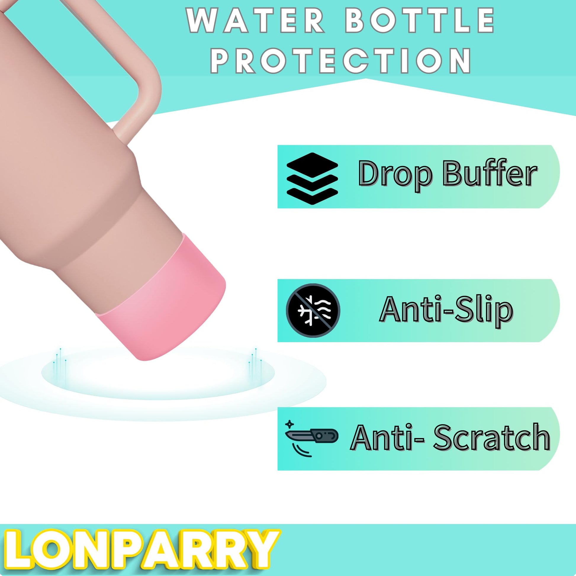 LONPARRY 2-Pack Stanley Cup Silicone Boot for Stanley Tumbler IceFlow 40oz Rubber Bottom Sleeve Protector for Stanley Owala Hydro Flask Tumbler 40oz Car Travel Cup Bottle Bottom (Black+Rouge Pink)