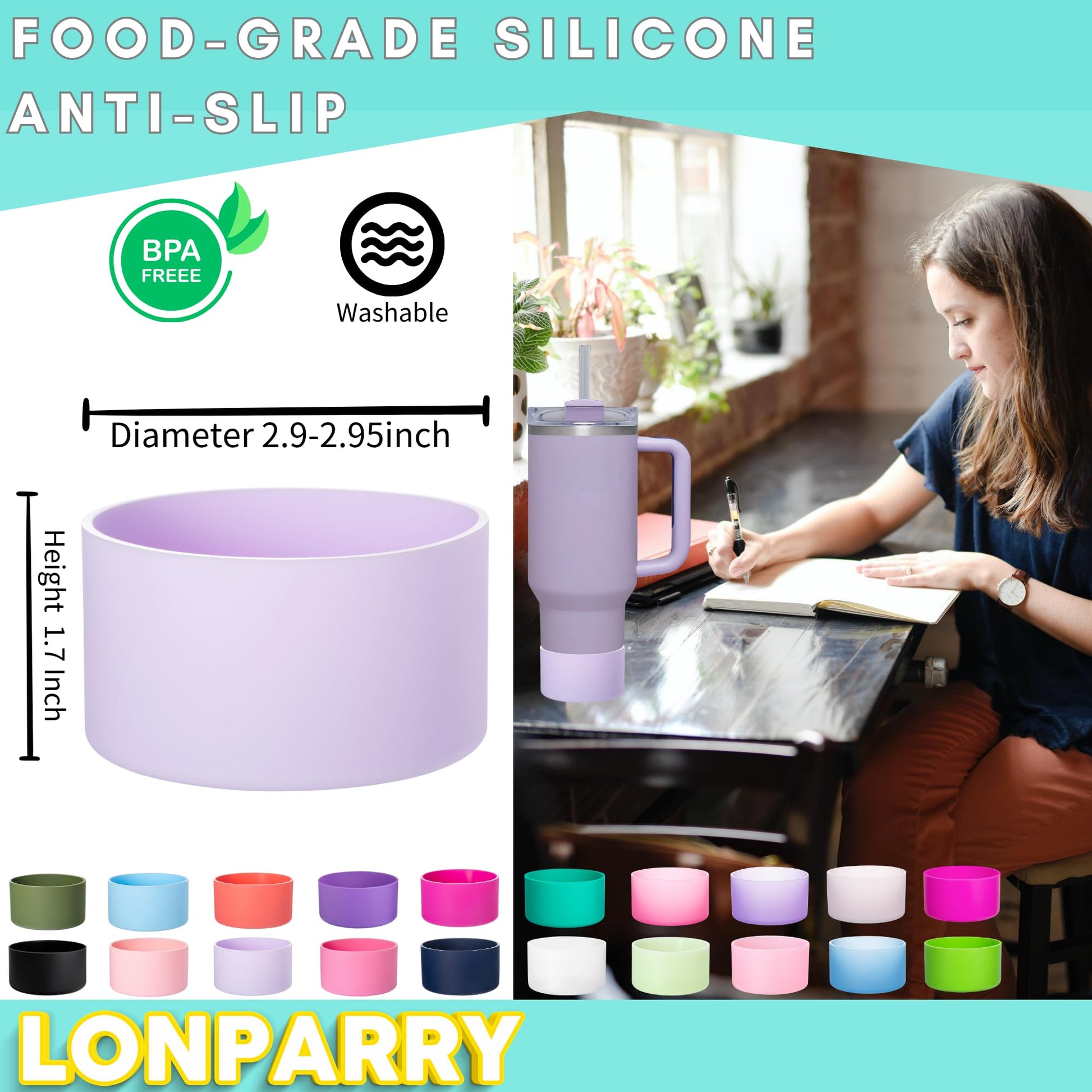 Details: Introducing the ultimate silicone boot, designed to elevate your hydration experience with unparalleled protection and style! Our versatile silicone boot fits a wide range of bottle sizes, including the popular Stanley Quencher Adventure 30oz 40oz, Stanley IceFlow 20oz 30oz, Owala Tumbler 40oz,Yeti Tumbler 30oz 20oz and Hydro Flask wide mouth bottles with a 2.85-2.95 inch diameter. Say goodbye to dents, scratches, and unwanted noise with our premium bottle bottom sleeve that delivers exceptional performance and durability. Our tumbler boot is crafted from high-quality, BPA-free silicone material, providing you with a safe, eco-friendly solution for preserving your favorite beverage containers. The anti-slip design ensures your bottle stays put on any surface, whether you're enjoying a hike, working out, or simply relaxing at home. This silicone bottom Sleeve comes in a convenient 2-pack/4-pack set, perfect for maintaining multiple bottles or sharing with friends and family. The soft touch protection offers a comfortable grip while preventing damage to surfaces or your valuable drinkware. As a Stanley cup accessories, Hydro Flask /Owala/Yeti accessories are not only functional but also add a touch of personality to your bottles. Choose from an array of eye-catching colors to match your unique style or make your bottle stand out in a crowd. Don't let your drinkware suffer from scratches, dents, or other damages that can occur during everyday use. With our silicone boot, your bottles will stay in pristine condition and continue to be reliable companions throughout your adventures. Upgrade your drinkware experience and elevate the functionality of your bottles with our premium quality silicone boot. Designed for maximum protection and style, this bottle bottom sleeve is the ideal addition to your collection of your tumbler accessories.