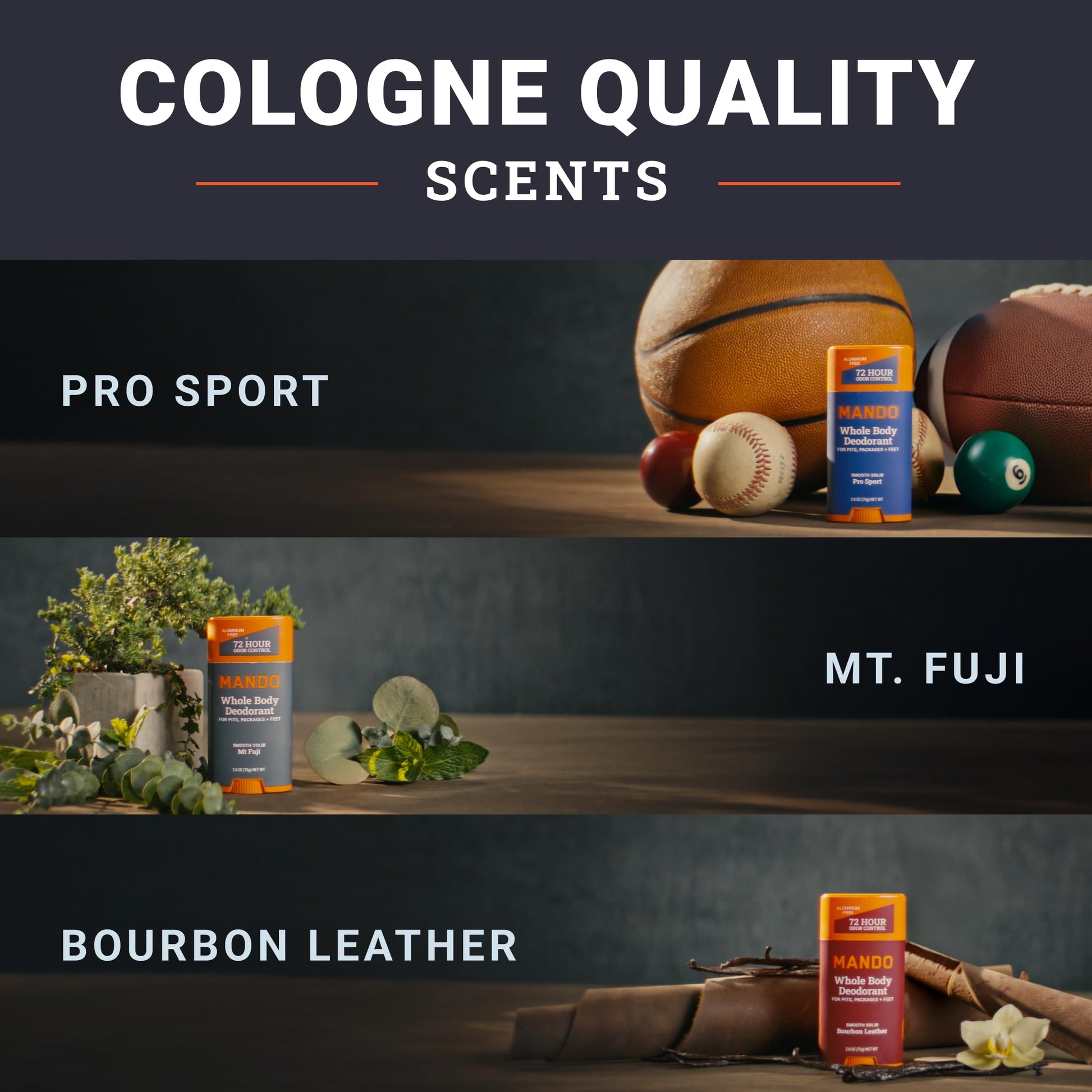 Mando Whole Body Deodorant For Men - Smooth Solid Stick - 72 Hour Odor Control - Aluminum Free, Baking Soda Free, Skin Safe - 2.6 ounce (Pack of 3)