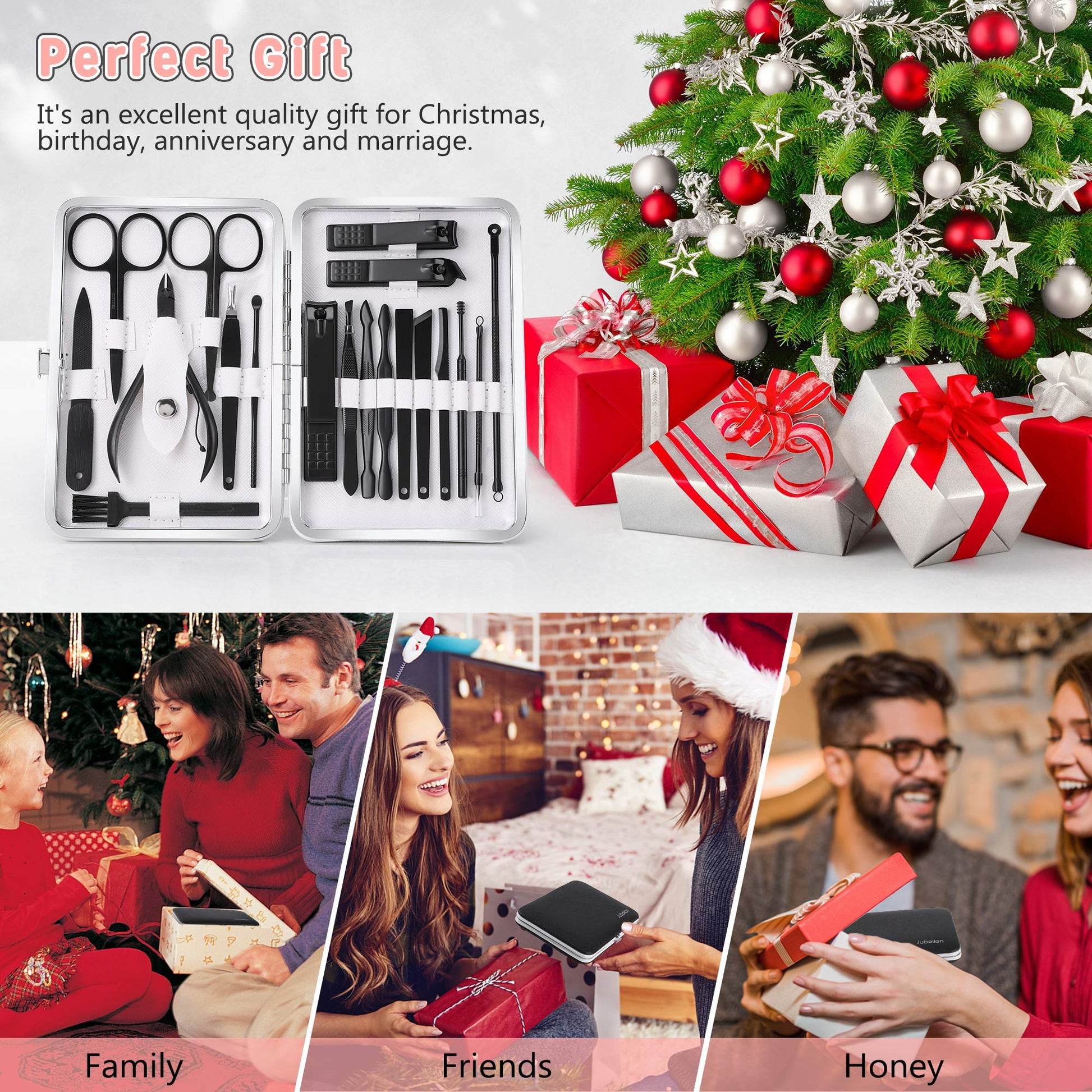 - ✅The Best Choice of Gifts - Jubolion Professional Grooming Kit‘s case is using the finest fabric and PU leather to keep the tools securely intact. The set highlight is black tools with a black high-quality PU leather texture case, feel comfortable, stylish and functional. This is the best gift for your relatives, friends, parents, children, husband and wife.
