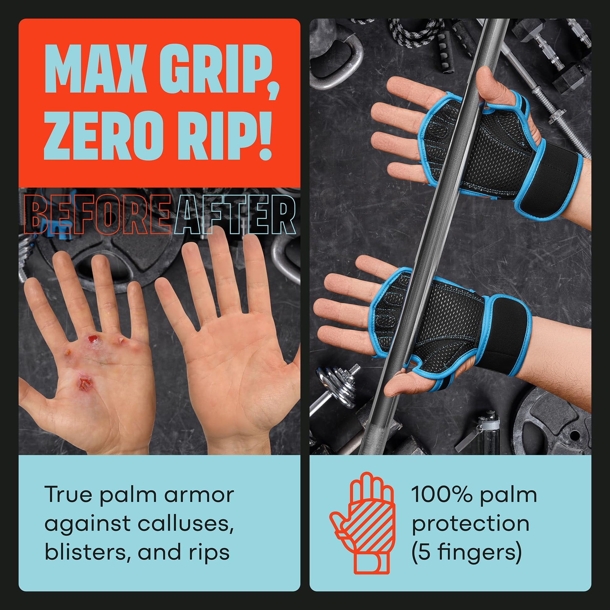 - ULTRA PROTECTION. These open weightlifting gloves prevent calluses, blisters, and rips. With neoprene base, anti-calluses layer, wrist wraps, and silicone grips, these gloves for working out ensure safety and comfort during intense sessions.