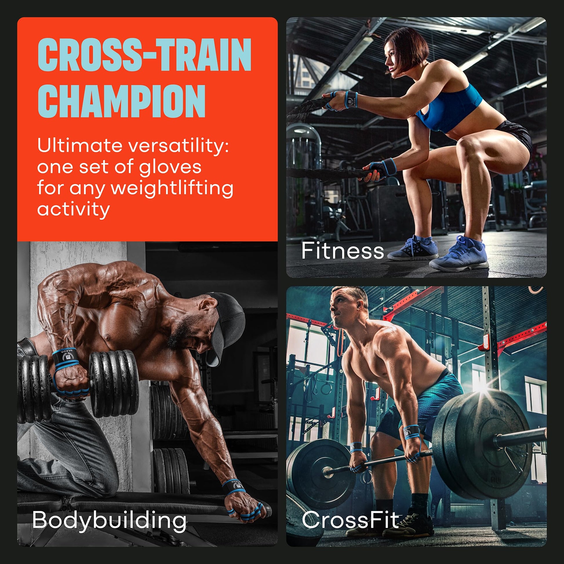 - MULTI-TRAINING UNLOCKED. These gym gloves for women & men come in XS–XL sizes, fitting everyone. Use them as yoga gloves, rowing gloves, gloves, and sports gloves for WODs, fitness, rope climbing, and more.