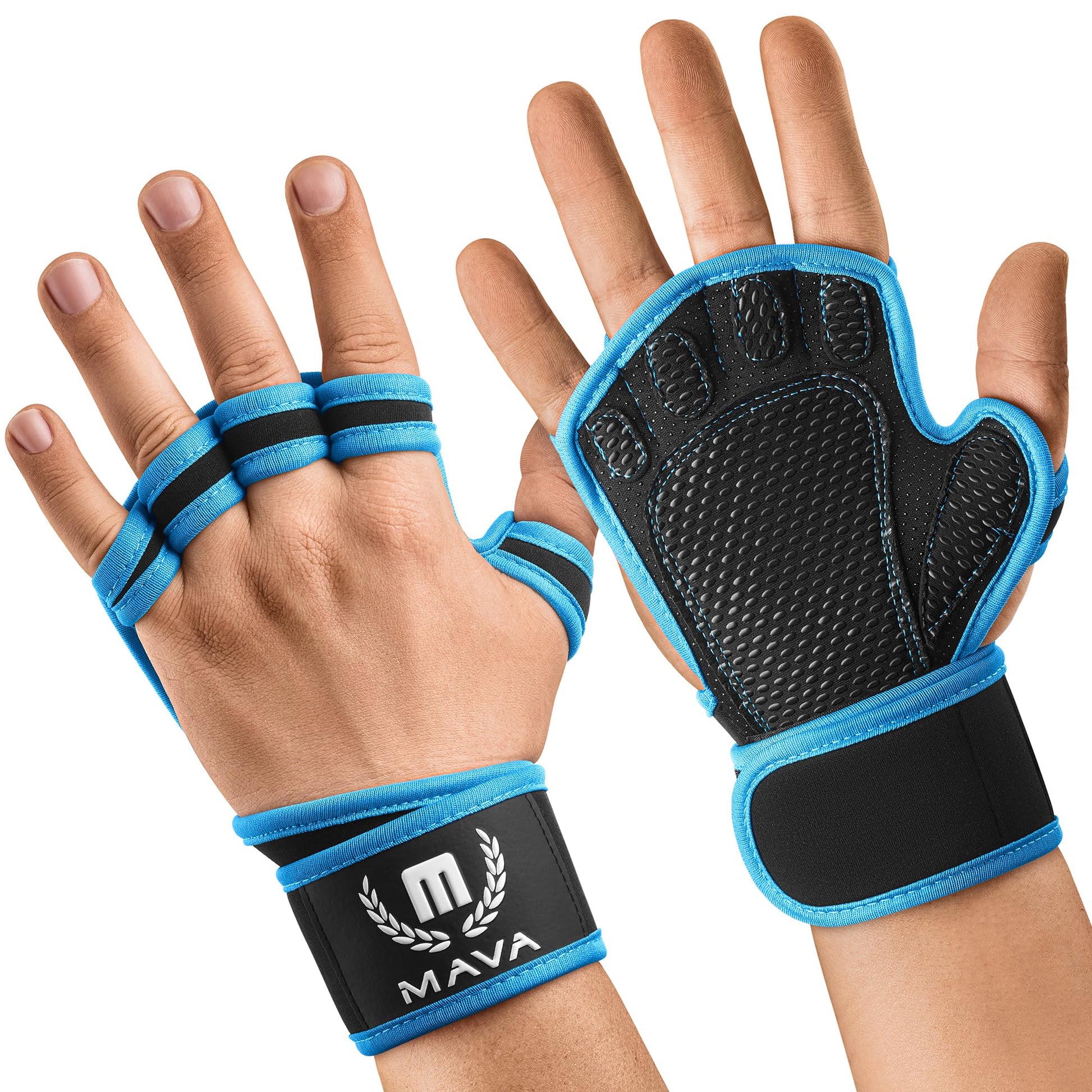 MAVA Open Gym Gloves for Men & Women; Padded Weight Lifting Gloves with Wrist Support for Comfort, Protection; Strong-Grip Fingerless Workout Gloves for Men & Women; Anti-Sweat Gym Accessories