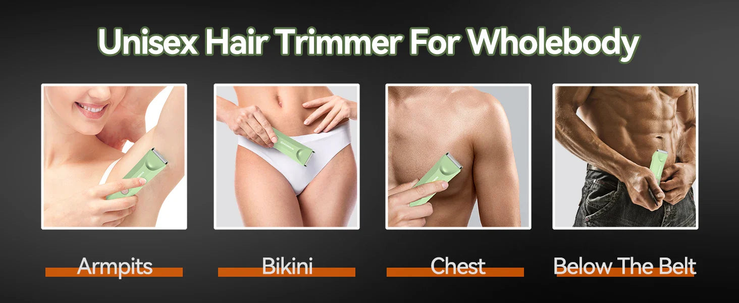 *This body trimmer can be used to trim all areas of the body, including underarms, shoulders, chest, legs, arms, and groin.