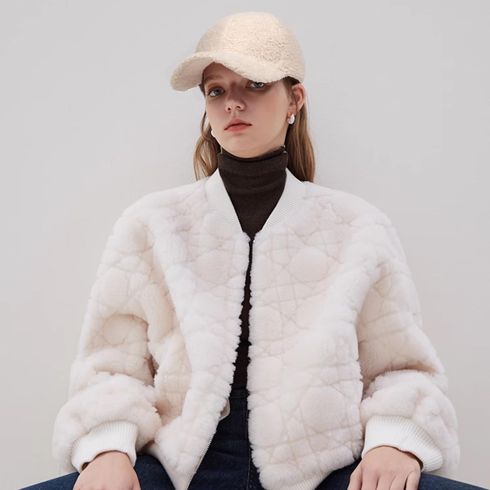MGBPEI 1Pack Women's Winter Baseball Cap Adjustable Solid Color Lamb Wool Warm Baseball Cap Unisex Unconstructed Plain Cap