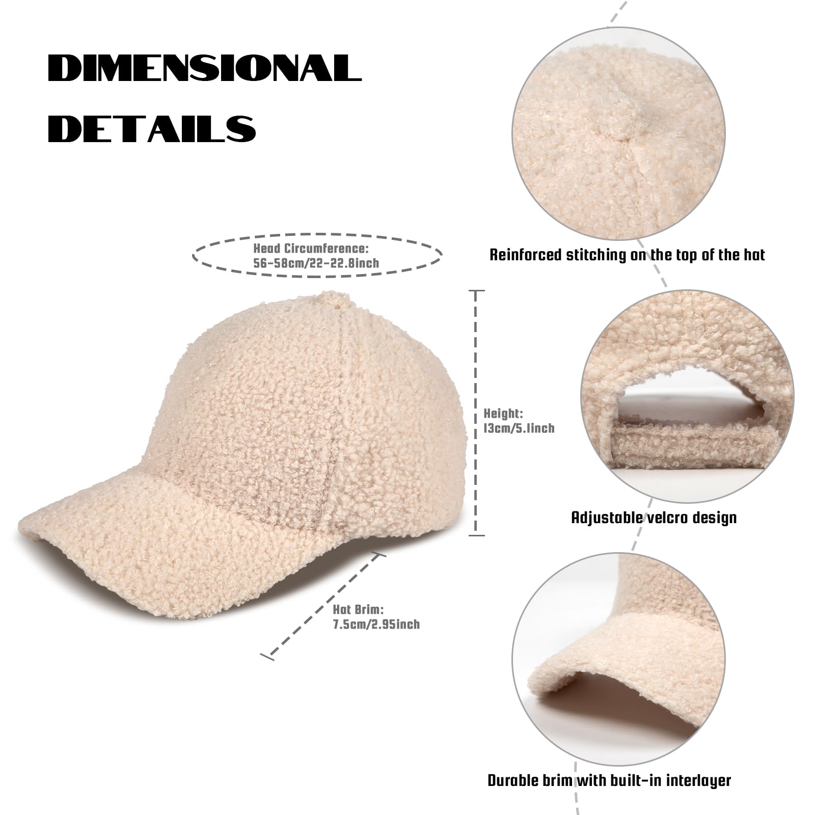 - Our Winter baseball hat circumference: 22.04-22.62 inches(56-60cm). With adjustable velcro back closure, the unisex design makes it suitably perfect for both men and women. Various Colors To Choose From.