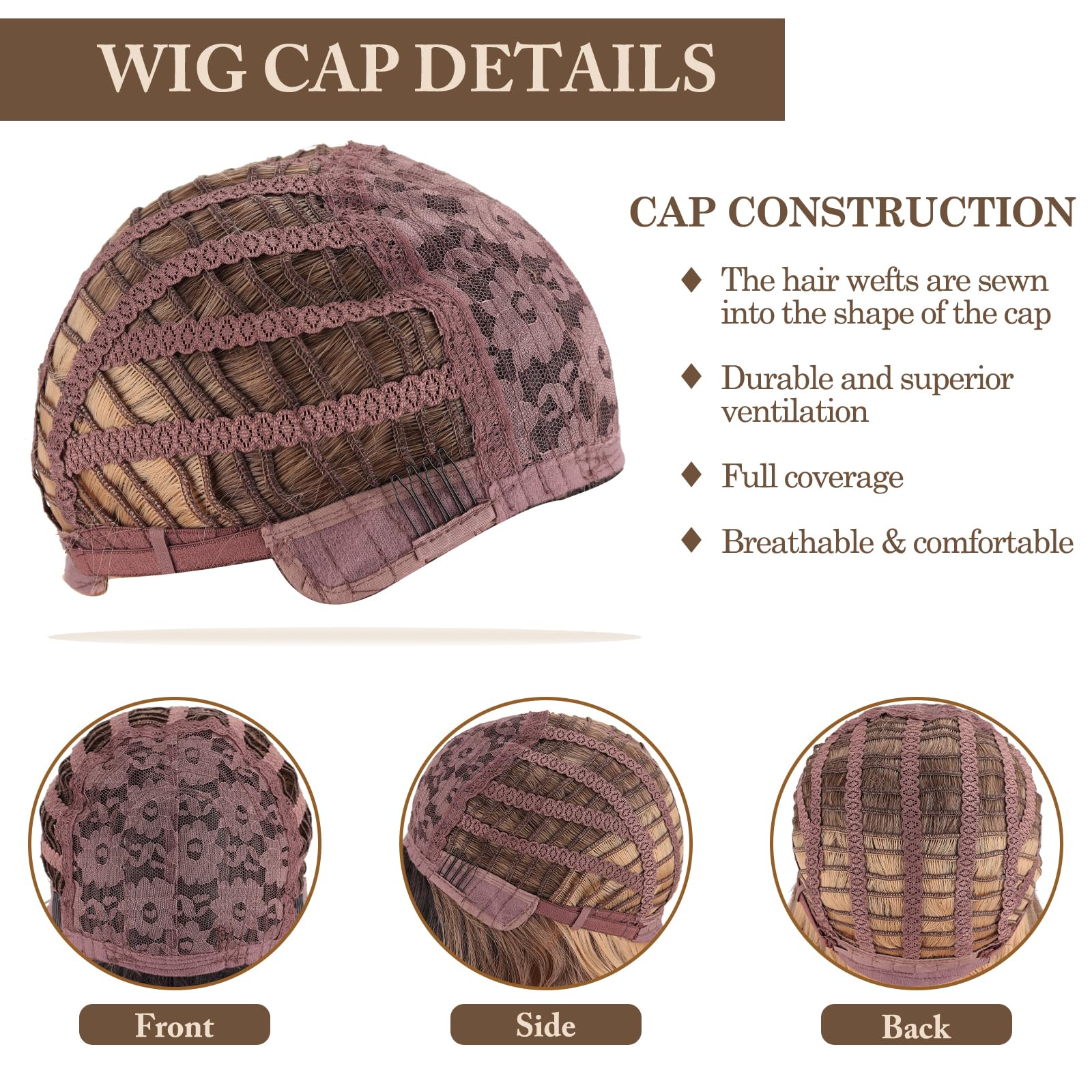 - 【Breathable Wig Cap】This short wavy brown omber blonde wig adopts a new breathable inner net and can be used in any season. Suitable for head circumferences of 21 to 22.5 inches, equipped with 2 adjustable straps and 2 combs to firmly fix the wig without falling off. The perfect ergonomic design allows you to easily install and remove it.
