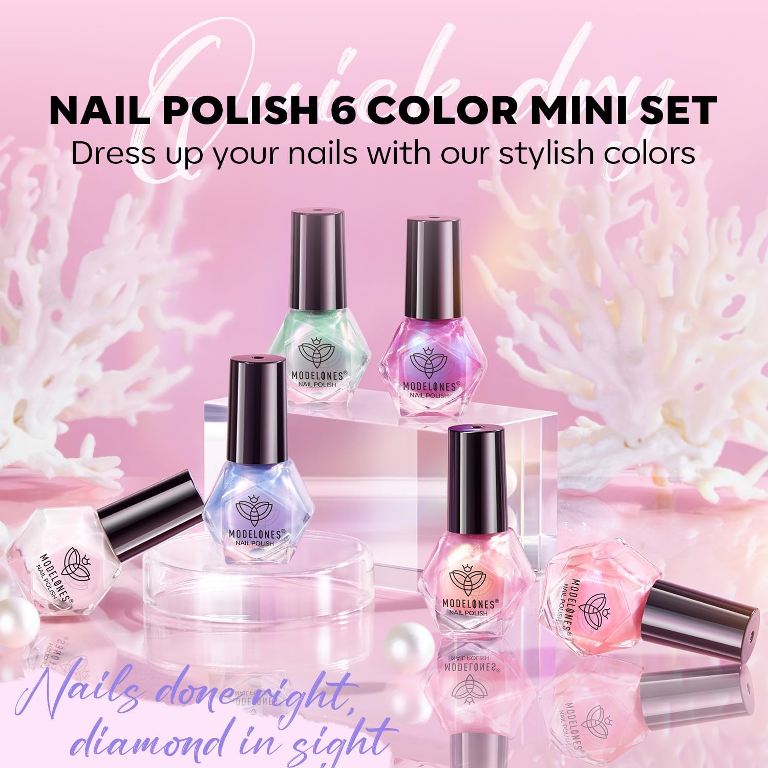 modelones Chrome Nail Polish Set, 2025 Spring Summer 6 Colors Shimmer Pearl White Pink Mermaid Purple Quick Dry Nail Polish Kit Fingernail Polish Manicure DIY Salon Home Easter Gifts for Women Girl