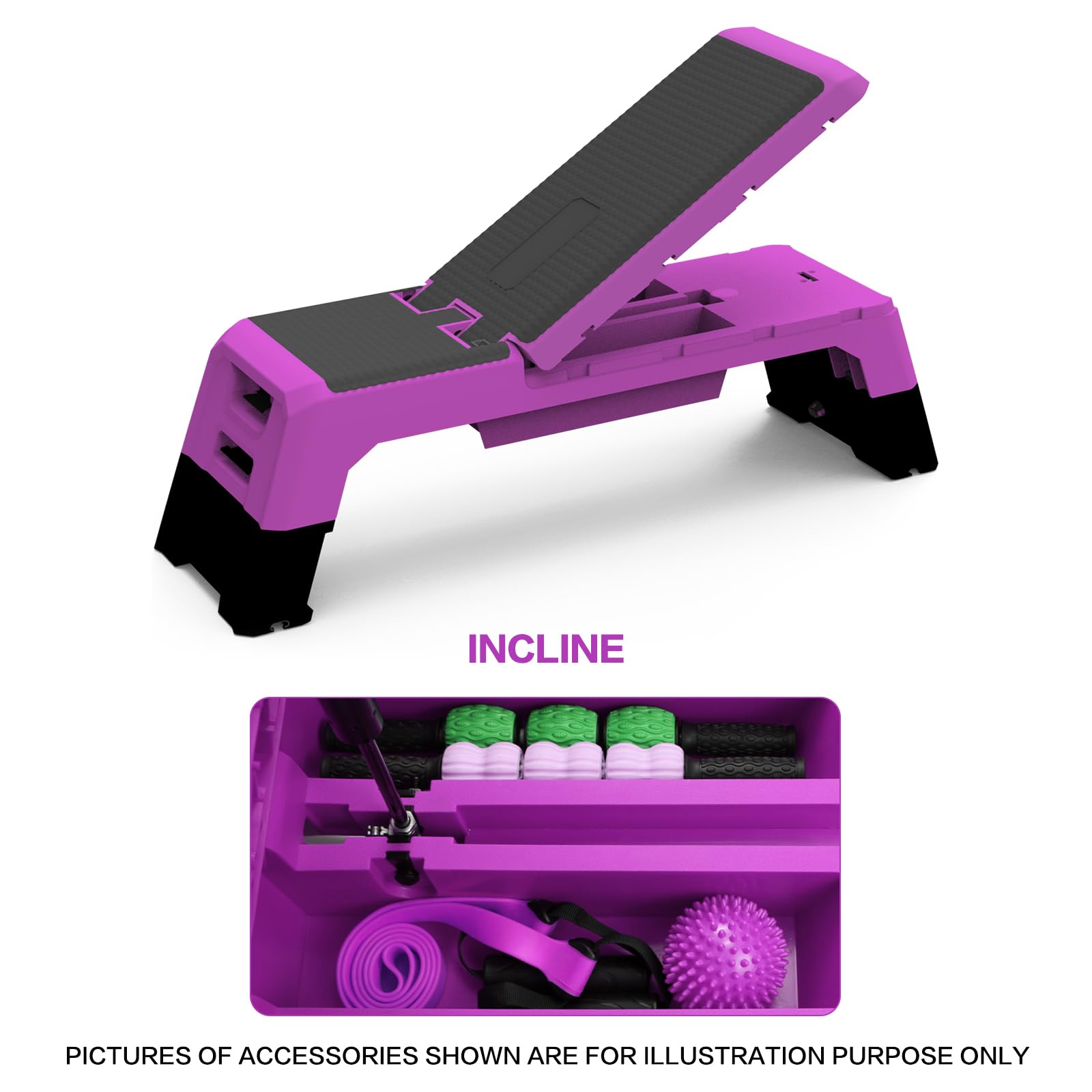 - 【Multi-Functional Fitness Step Platform】The multifunctional deck sports step platform with resistance bands. Our step platform has multiple functions, including a cardio stepper, a dumbbell bench, and a weight bench. It can not only help you lose weight, but also tone your legs, buttocks, and abdomen, and improve your overall fitness level.