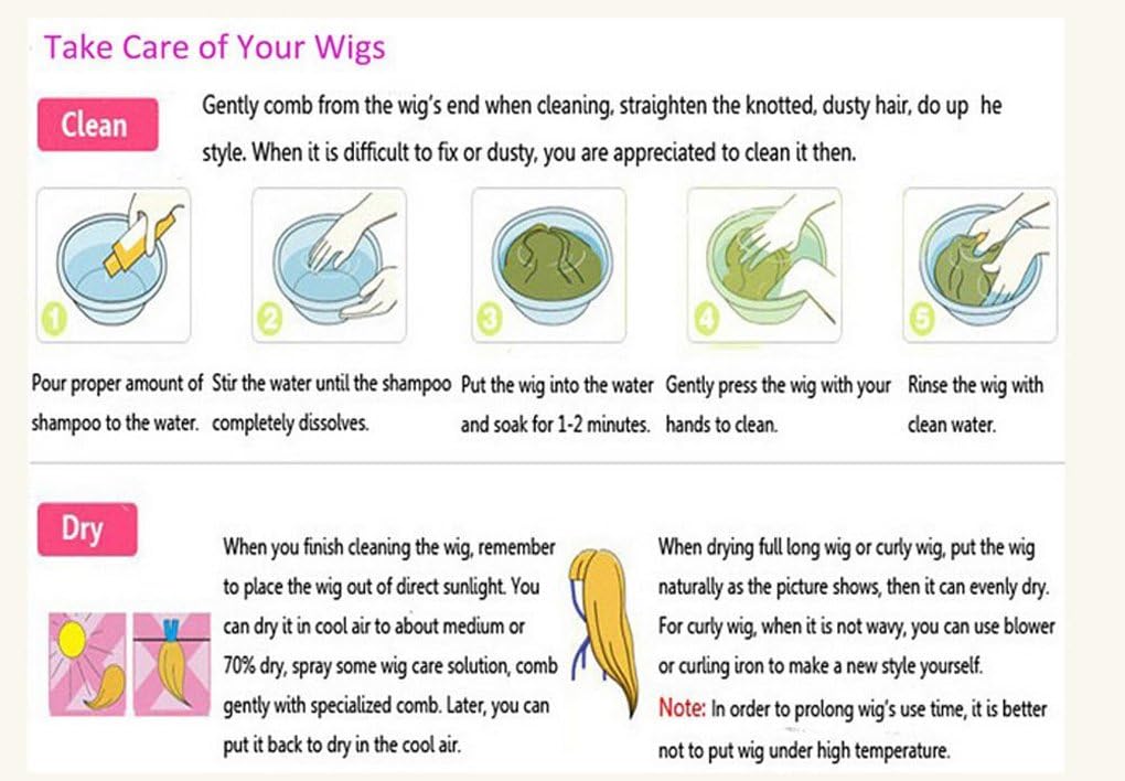 - 【Note】Don't wash it by washing machine or washing in hot water. Only handwash in COLD WATER or WARM WATER.Wig color may vary due to different monitor or lights.