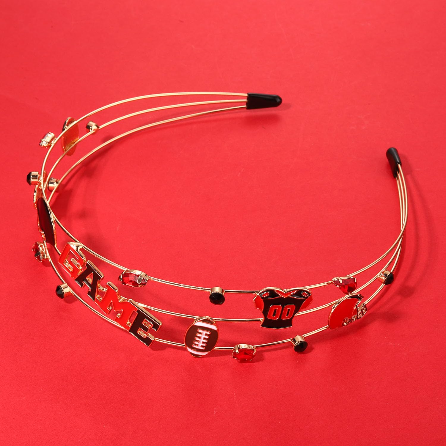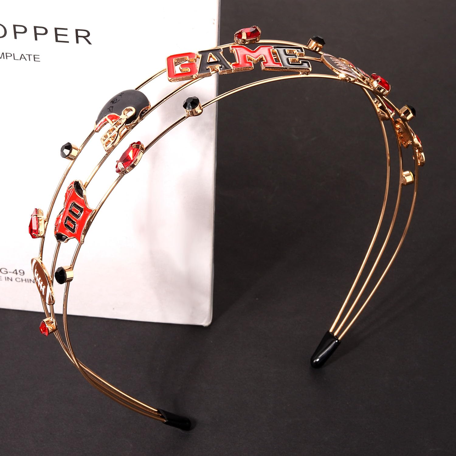 mokkia Football Headband for Women - Red Black Jeweled Rhinestone Sports Team Accessory, Holiday Gift (Game Day 1)