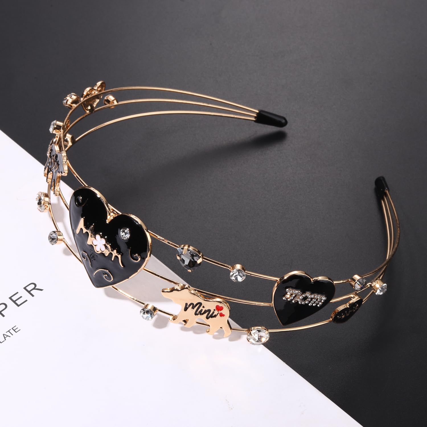 mokkia Mother's Day Headband for Women - Love Heart Enamel and Rhinestone Jeweled Hair Accessories, Gift for Moms