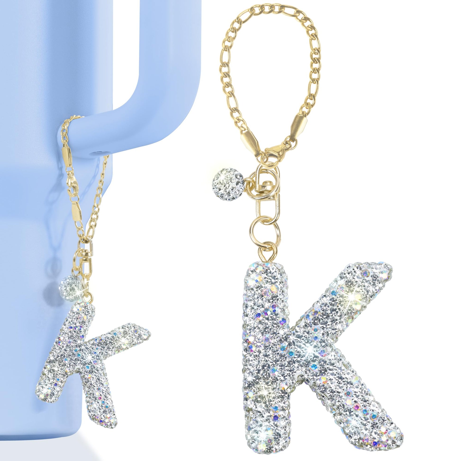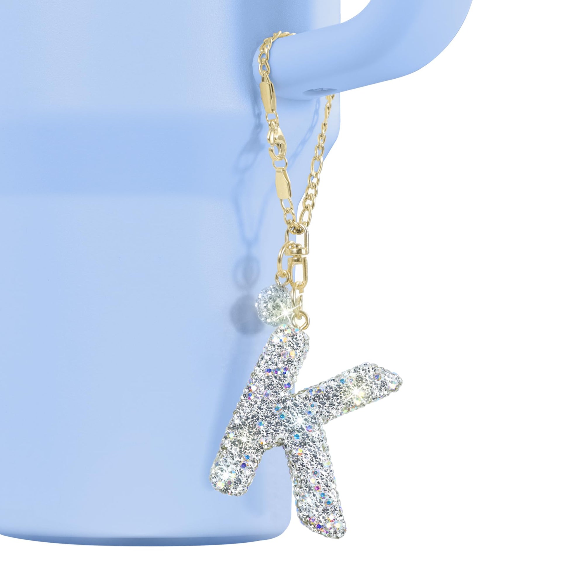 Mokoart Glitter Letter Tumbler Accessories for Stanley Cup, Water Bottle Chain for Stanley/Simple Modern Tumbler with Handle, Cute Initial Name ID with Bling Letter for Stanley Cup Accessories (K)