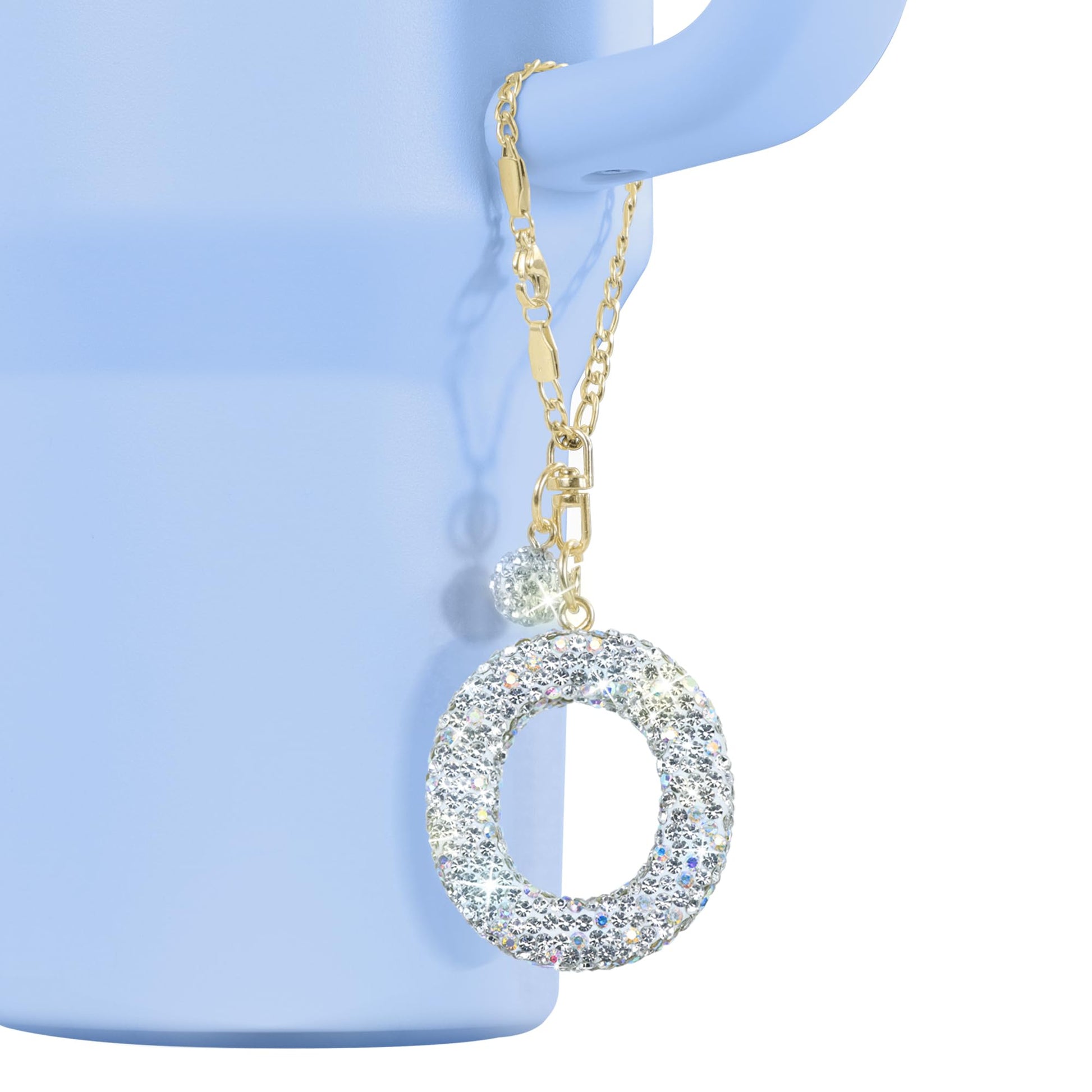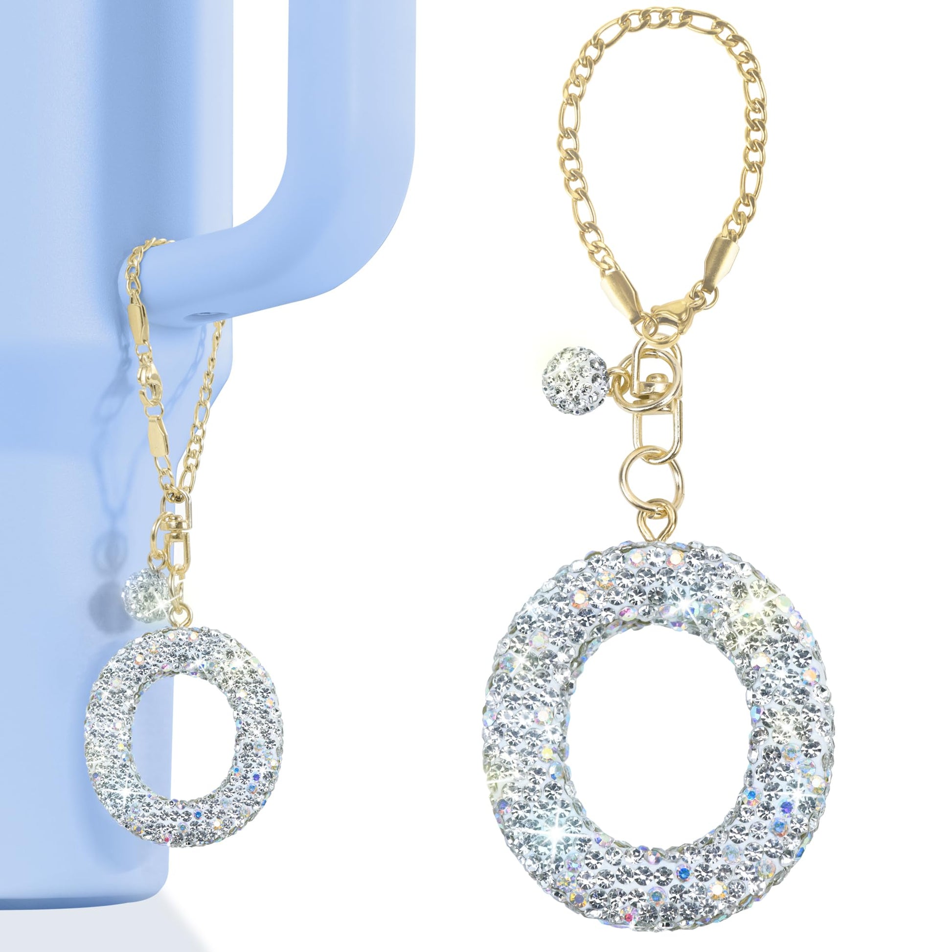 Mokoart Glitter Letter Tumbler Accessories for Stanley Cup, Water Bottle Chain for Stanley/Simple Modern Tumbler with Handle, Cute Initial Name ID with Bling Letter for Stanley Cup Accessories (O)