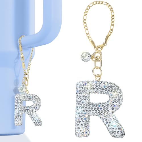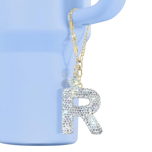 Mokoart Glitter Letter Tumbler Accessories for Stanley Cup, Water Bottle Chain for Stanley/Simple Modern Tumbler with Handle, Cute Initial Name ID with Bling Letter for Stanley Cup Accessories (R)