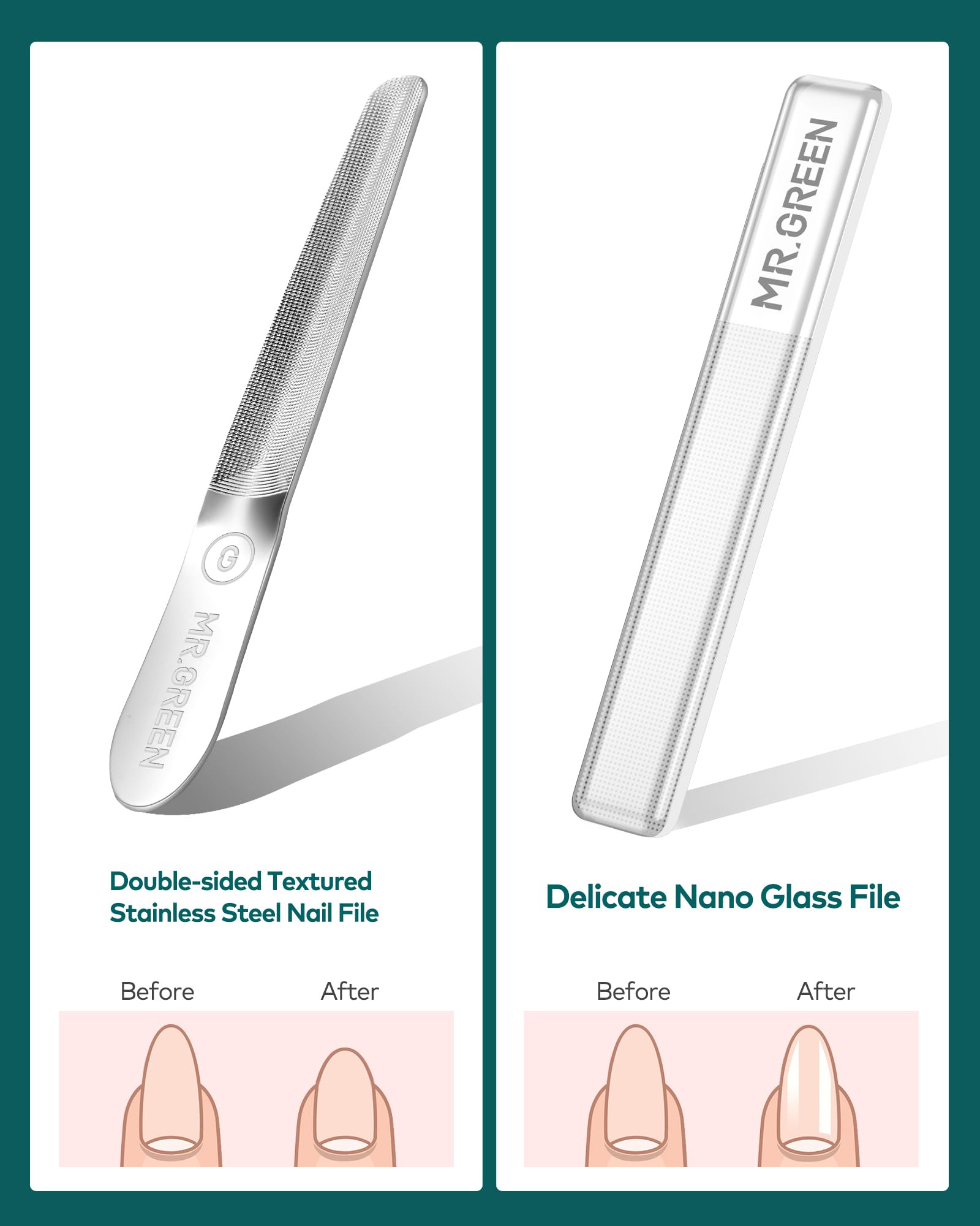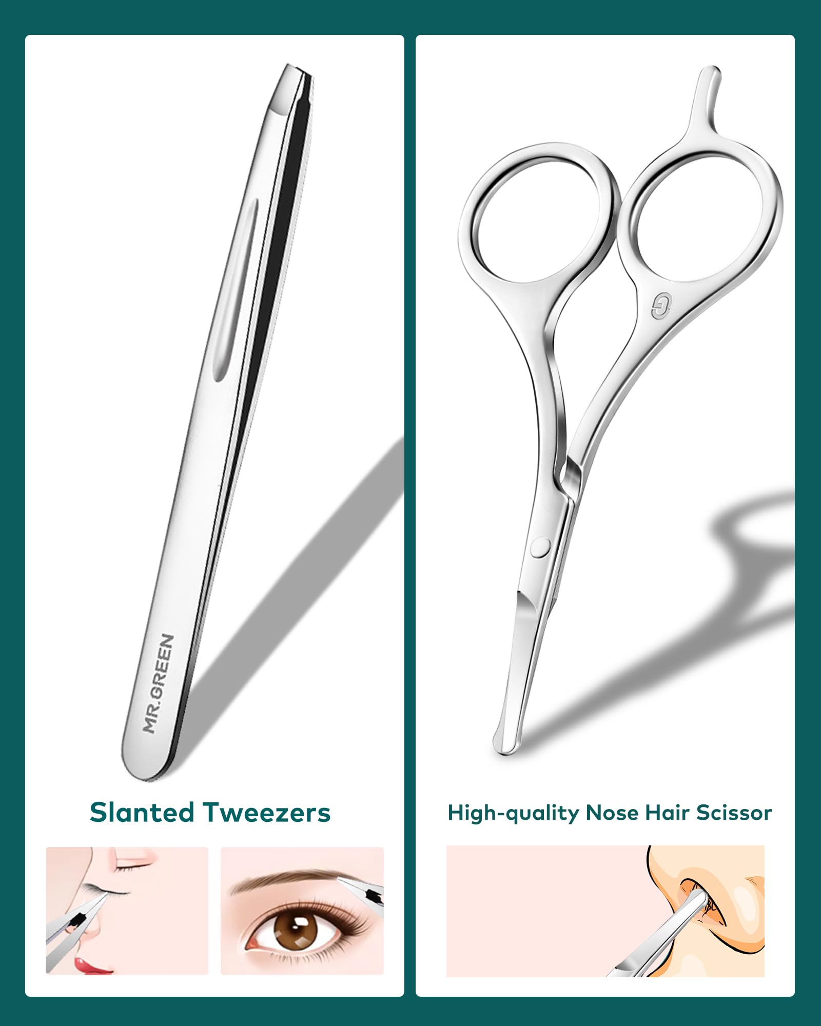 - 【10 PCS Manicure Set】Professional manicure set includes nail clipper/ beveled nail clipper/ thick nail clipper/ nose hair clipper/ tweezers/ ear wax remover/ V-shaped push stick/ nail dirt remover/ glass polishing file/ nail file. Super convenient nail care kit, Mr. Green's selection of handy kits eliminates the need to pay for a single nail clipper or facial tool!