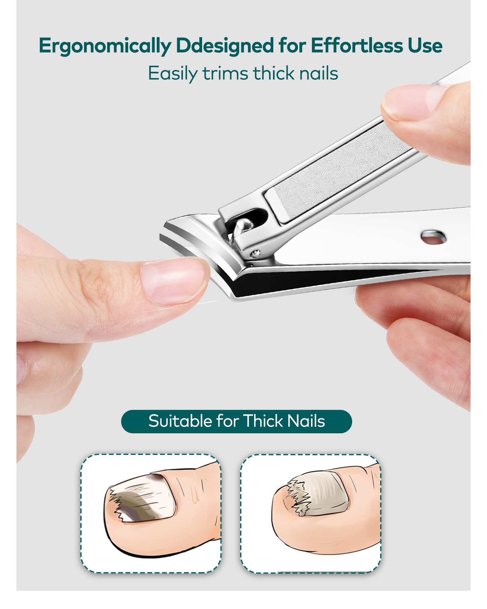- 【Ergonomic Design】Ergonomically designed handle, energy-saving, comfortable to hold, easy to control. The nail clipper has a curved blade that adapts to the shape of the toenails, which can be cut easily and precisely, providing a professional grooming experience.