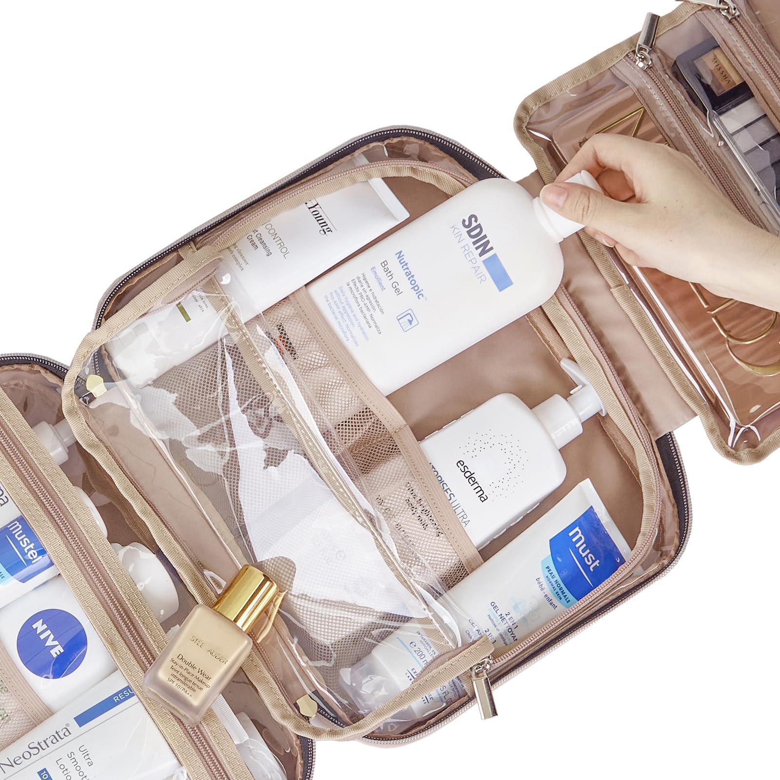 - ORGANIZATION IS THE KEY TO A HAPPY TRAVEL - Store your toiletries and cosmetics in the elasticated pockets for maximum organization, or in the zippered compartment for additional safekeeping