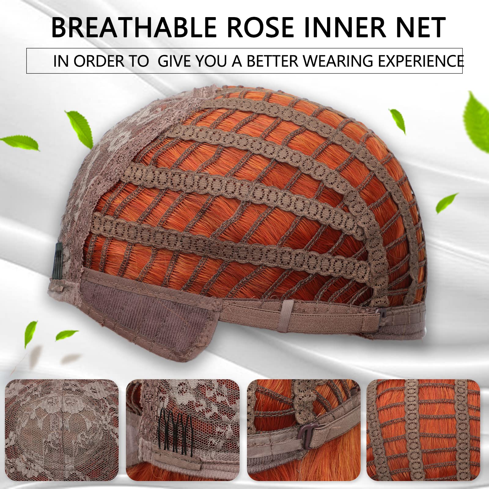 - 💕【Cap Size】: This orange wig has soft, adjustable straps to fit most size/shape heads, average fit 21.25 - 22.25 inches head circumference.