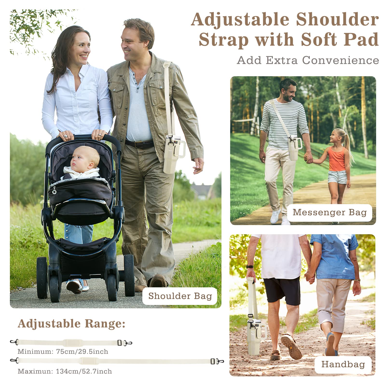 Nuovoware Water Bottle Carrier Bag Fits Stanley 40 Oz Tumbler with Handle, Bottle Bag with Adjustable Shoulder Strap, Neoprene Bottle Holder for Stanley Water Bottle Accessories, Milk White