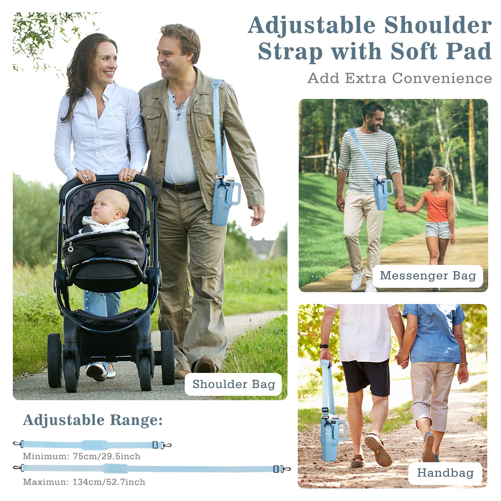 Nuovoware Water Bottle Carrier Bag Fits Stanley 40 Oz Tumbler with Handle, Water Bottle Bag with Adjustable Shoulder Strap, Neoprene Bottle Holder for Stanley Water Bottle Accessories, Blue Sea Foam