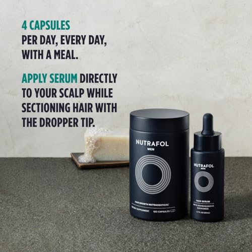 - HAIR GROWTH SUPPLEMENTS AND HAIR SERUM: One (1) bottle of Nutrafol Men Hair Growth Supplements and one (1) 1.7 fl oz bottle of Nutrafol Men Hair Serum to support thinning hair inside and out