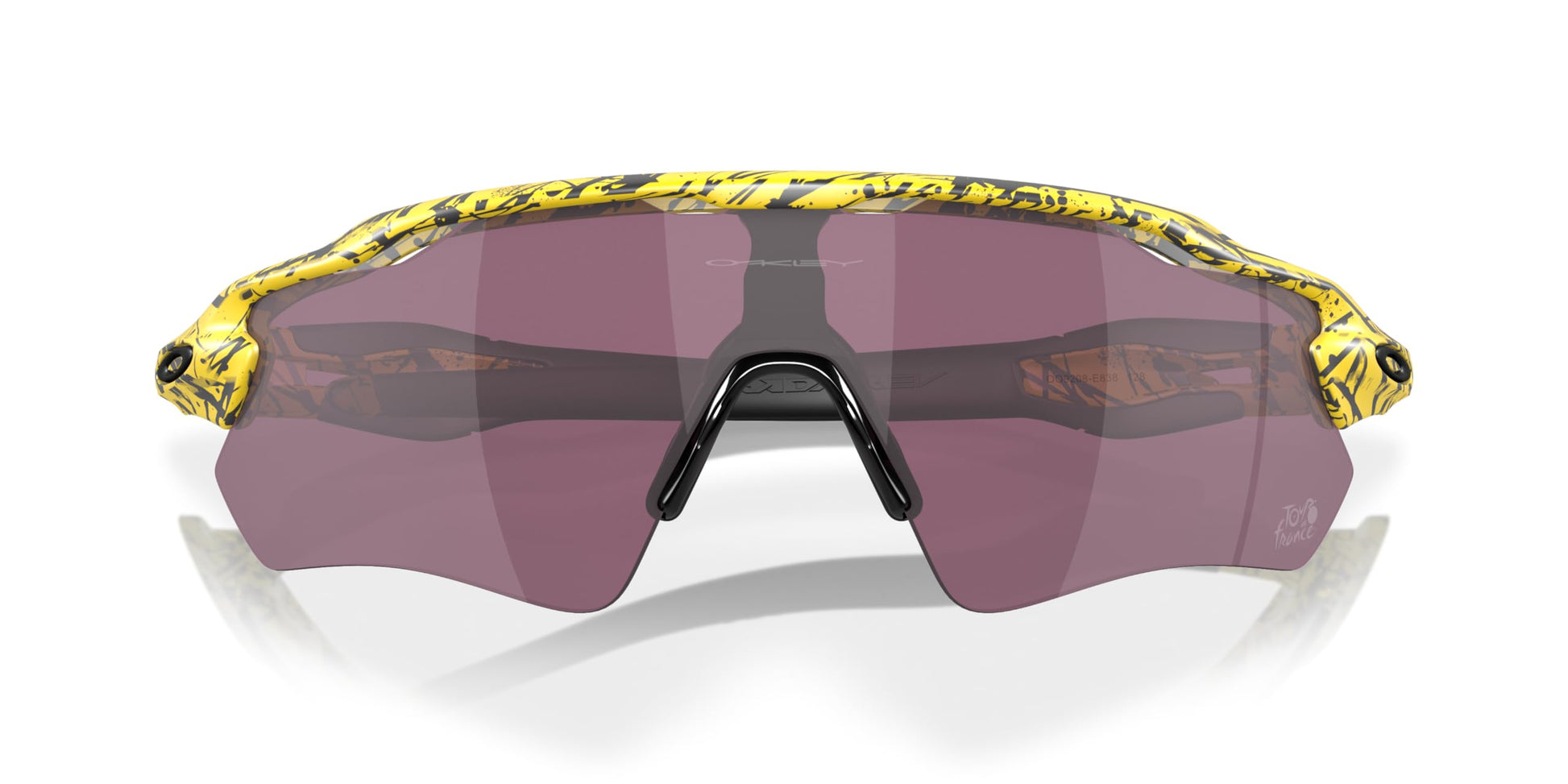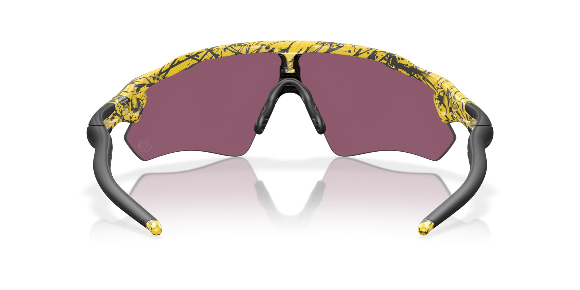 - FRAME FEATURES: OO9208 Radar EV Path sunglasses have a wide field of view which makes it easier to check your blind spots. They feature a geometric rectangular, splatter yellow frame and Prizm road black lenses.
