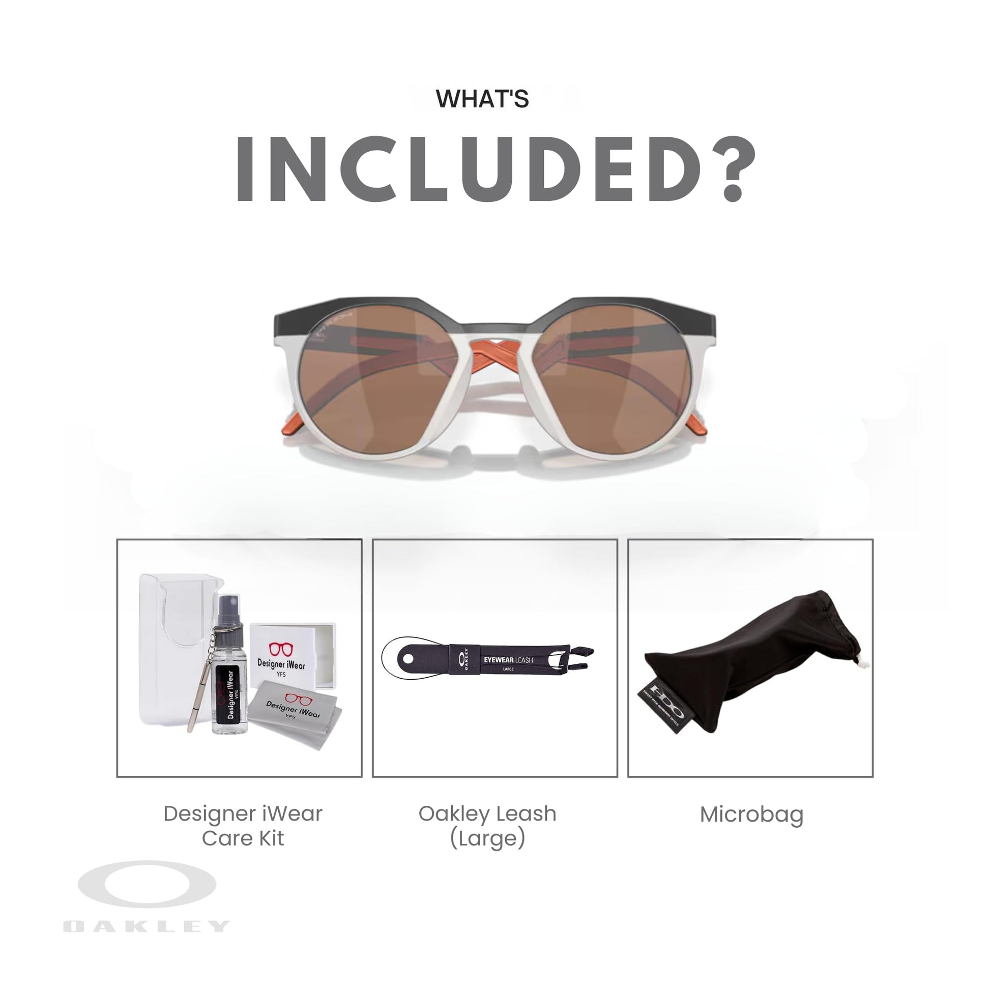 - Complete Protection and Convenience: Includes an Oakley microfiber bag to protect your sunglasses and keep them in top condition, an Oakley leash to secure your frames and prevent loss, plus essential accessories like Designer iWear's 1 oz lens cleaner, screwdriver keychain, mirror, and microfiber cloth for ultimate care and convenience.