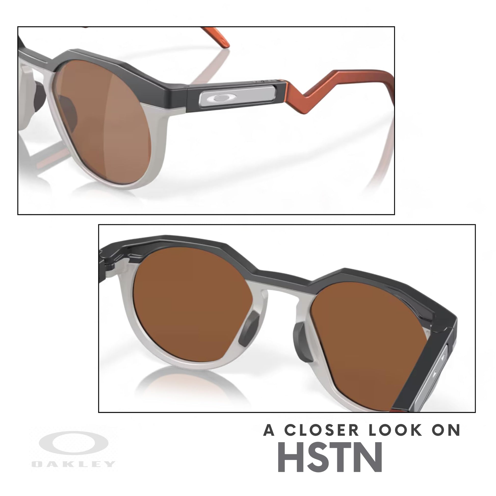 - About the HSTN: The Oakley HSTN is a lifestyle and performance men's sunglasses. HSTN features the same progressive design and heritage features as the original, including striking modernized circular lenses and a modernized trigger stem. Ideal for stylish men, these sunglasses features plant-based lightweight BiO-Matter frame material, Unobtainium nosepads and three-point fit ensuring unparalled comfort and improved grip for your everyday wear and activities. Color code: 924206.
