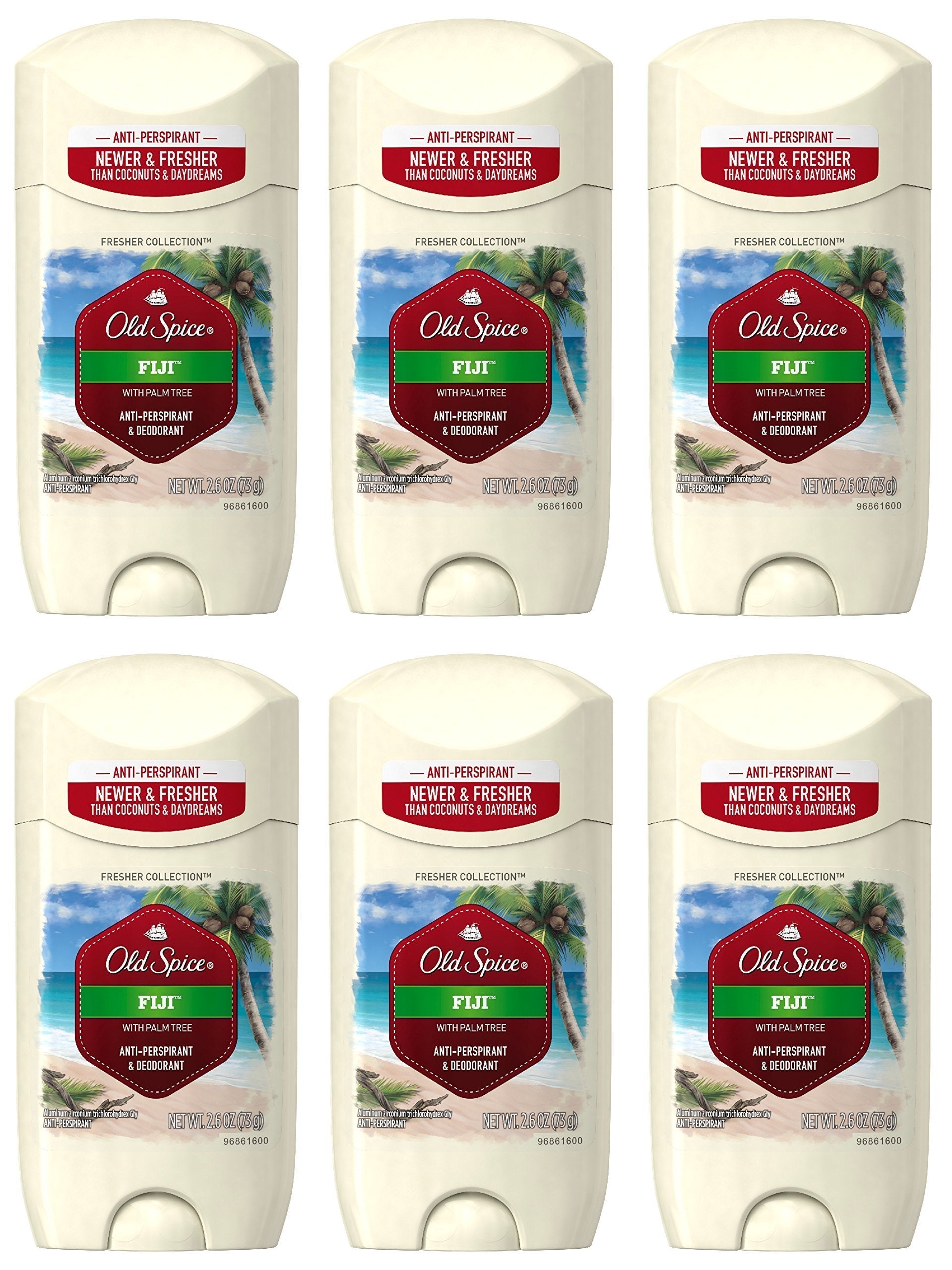 Old Spice Antiperspirant and Deodorant for Men Fiji with Palm Tree Scent 2.6 Oz (Pack of 6)