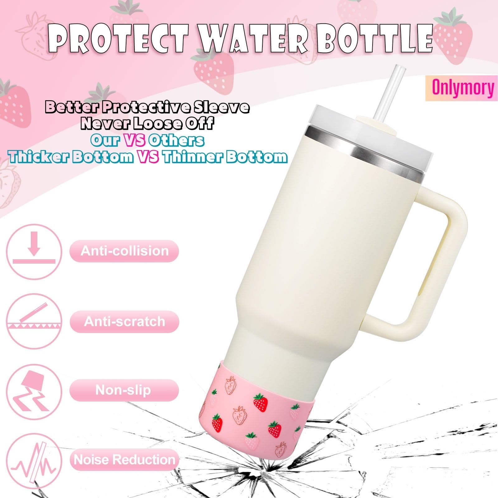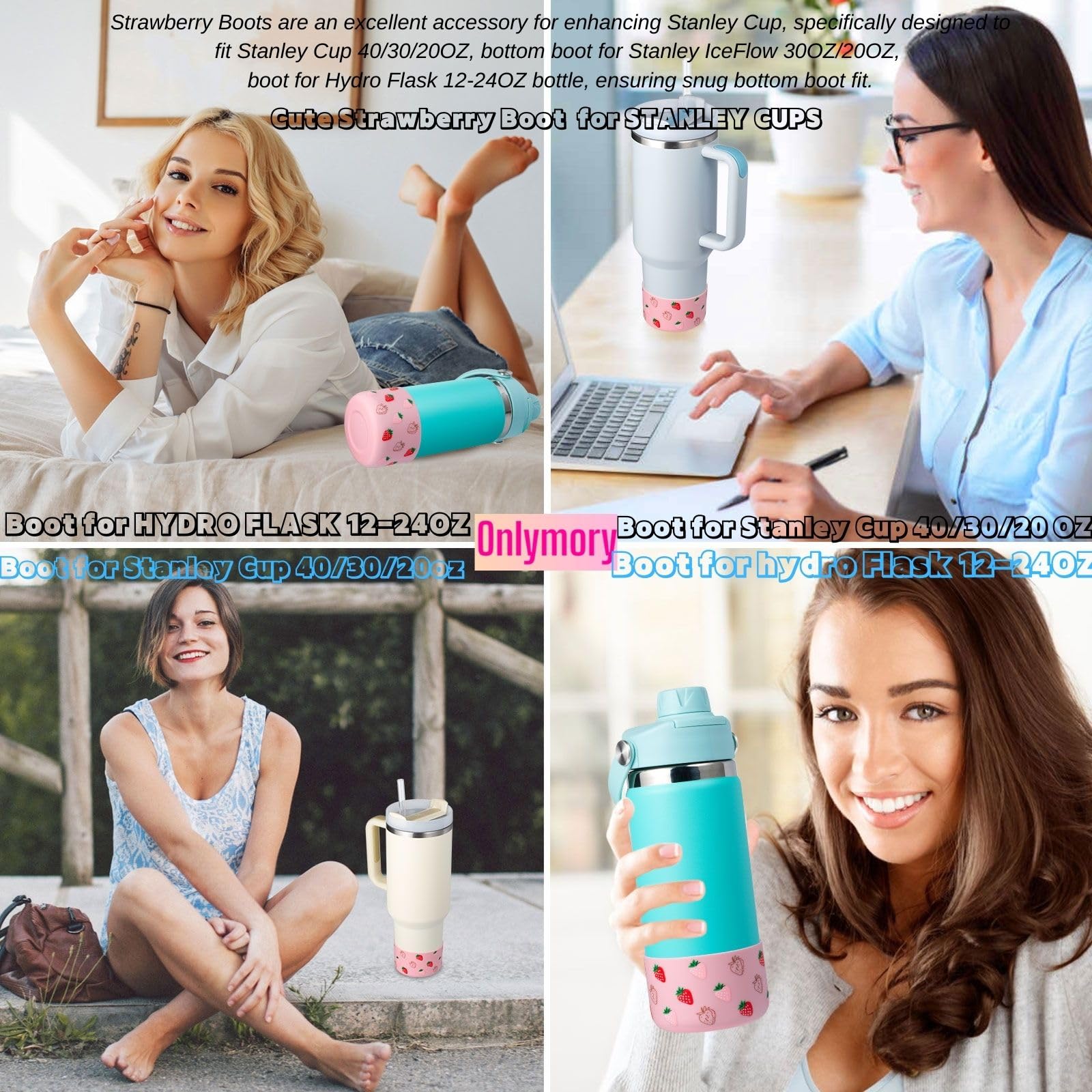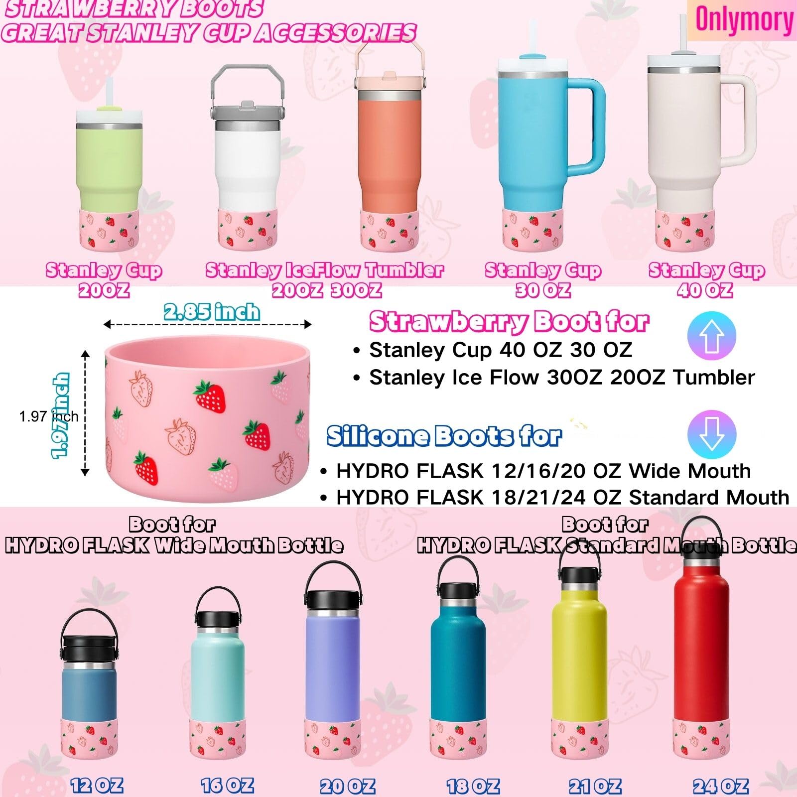 Onlymory Silicone Boots for Stanley Cup 40 30 20 OZ, Bottom Boot for Stanley IceFlow 20OZ 30OZ, Sleeve Cover Protector for Hydroflask 12-24 oz Water Bottle Stanley Cup Accessories