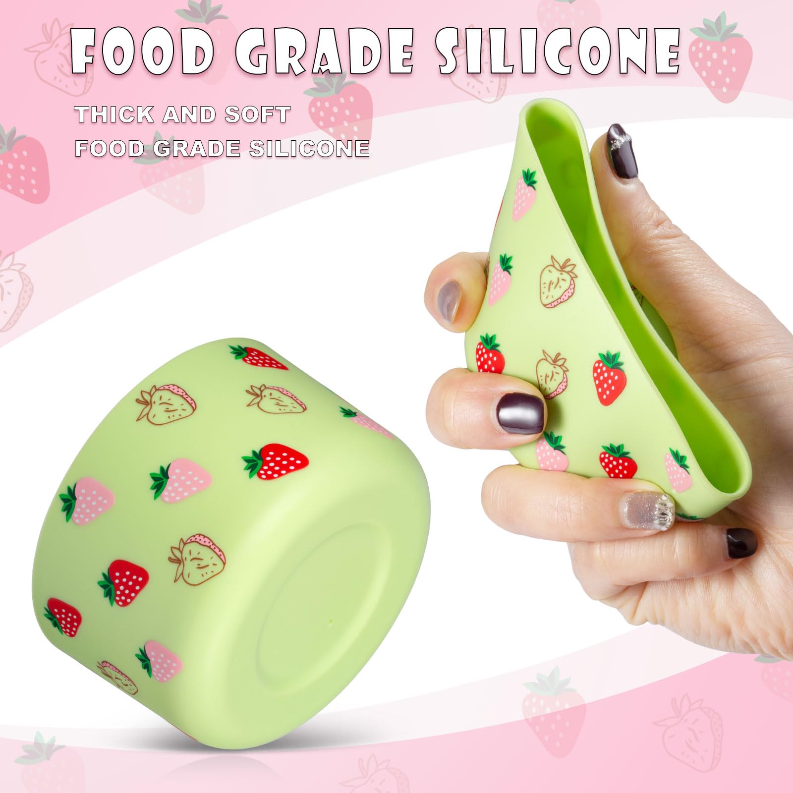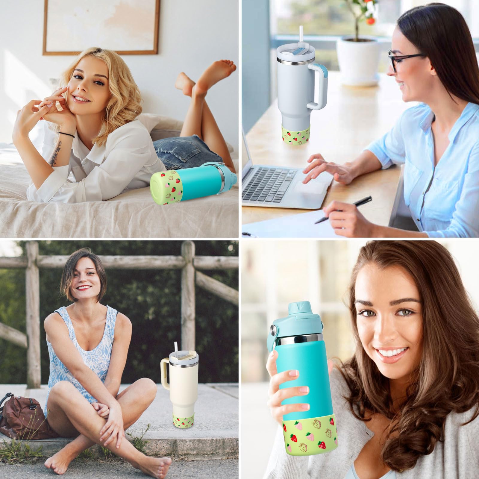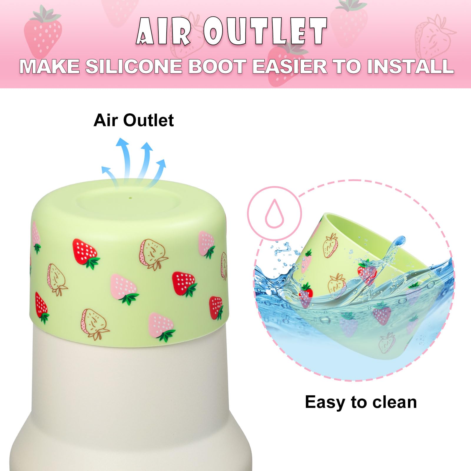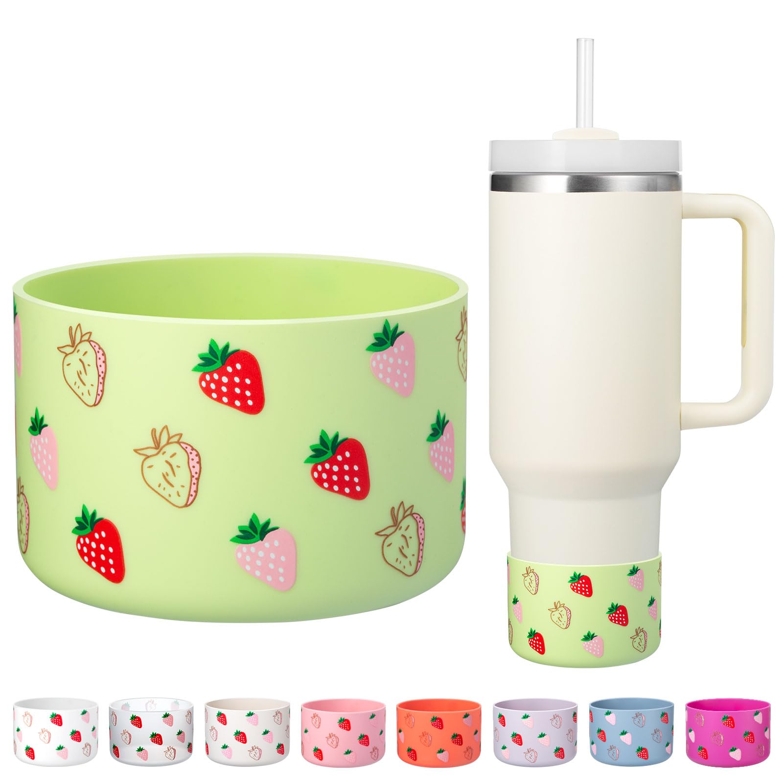 - [Special Design] Cute silicone boot designed for Stanley cups, with vivid color and nice pattern, strawberry boot greatly upgrade your STANLEY cup. Bottom boot in original design, making your Stanley cup more attractive. 3D effect pattern gives a nice look when placing protective sleeve covers onto tumblers and hydro water bottles. Semi transparent effect reveals the base color of Stanley cup, accessories to upgrade your Stanley cup to be unique and outstanding.
