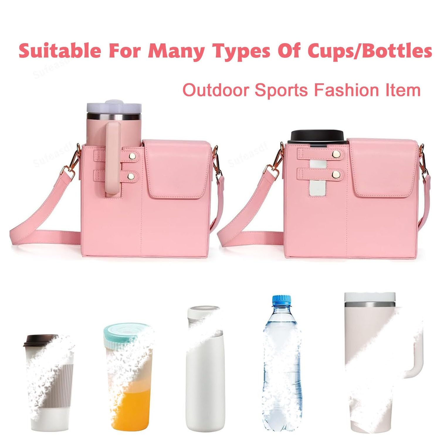 Outdoor Portable Crossbody Water Cup Storage Bag,Crossbody Cup Holder Bag,Crossbody Bag With Water Bottle Holder,for Stanley Purse Cup Holder Bag,Leather Water Bottle Bag With Adjustable Strap for Women