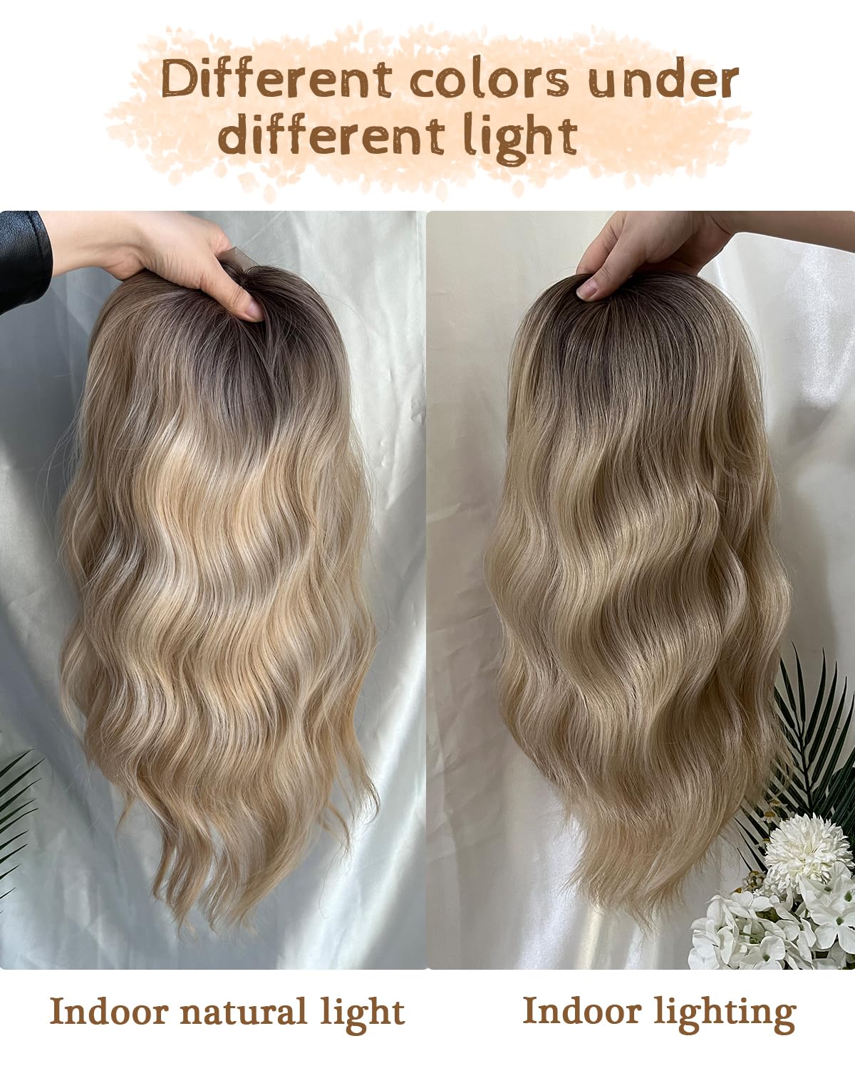 PANEWAY 16Inch Hair Toppers for Women with Thinning Hair - 6.5''x6.5'' Ladies Wiglets Toppers - Ombre Dark Root to Blonde