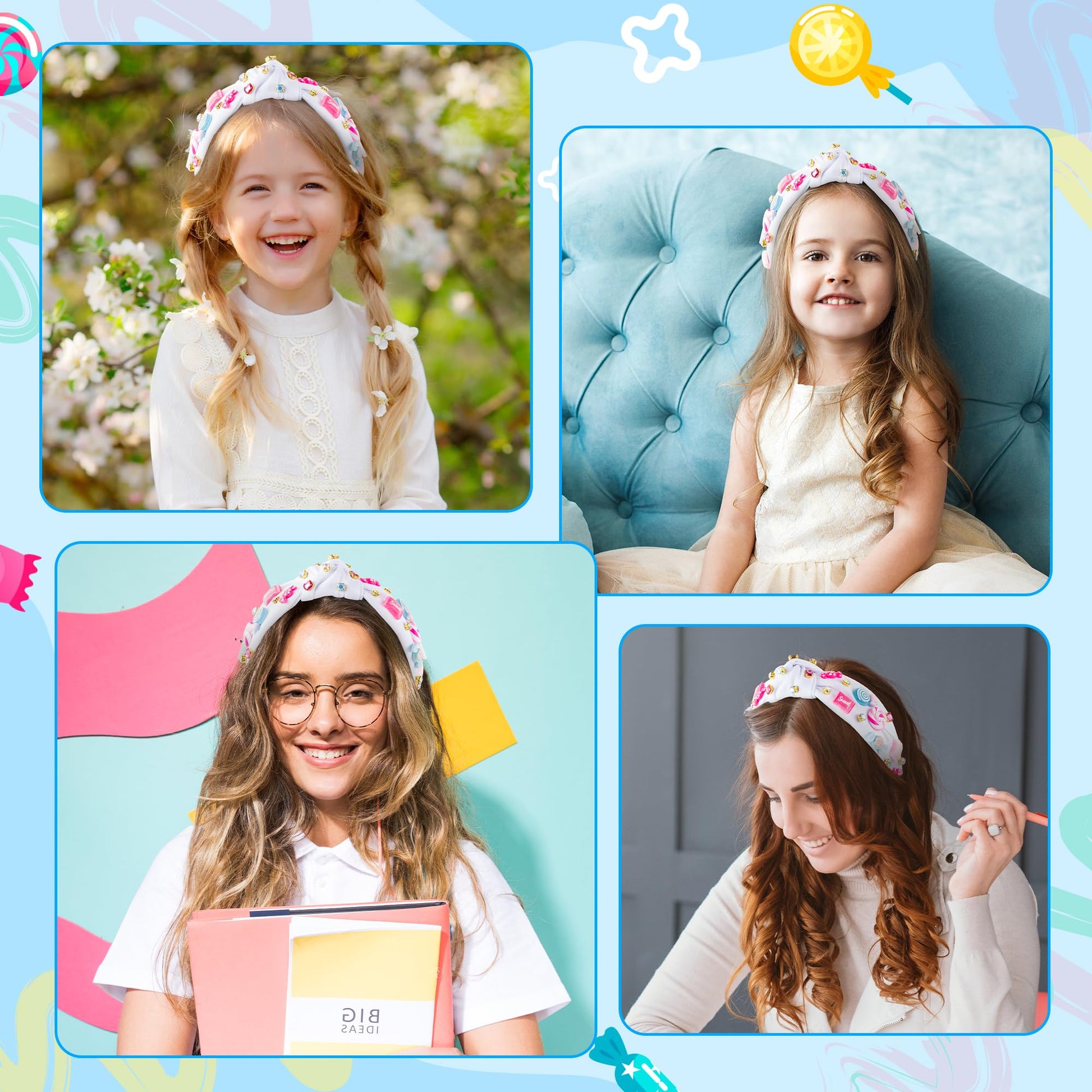 - GLAMOROUS STYLE: Make a dazzling statement with our candy jeweled rhinestone knotted headband. Quality fabrics, cute candy lollipop and rhinestone crystal decor, add a touch of funny and sparkle to your hair accessories! This is the ideal choice to enhance your look, whether it's for a casual outing or a formal event.