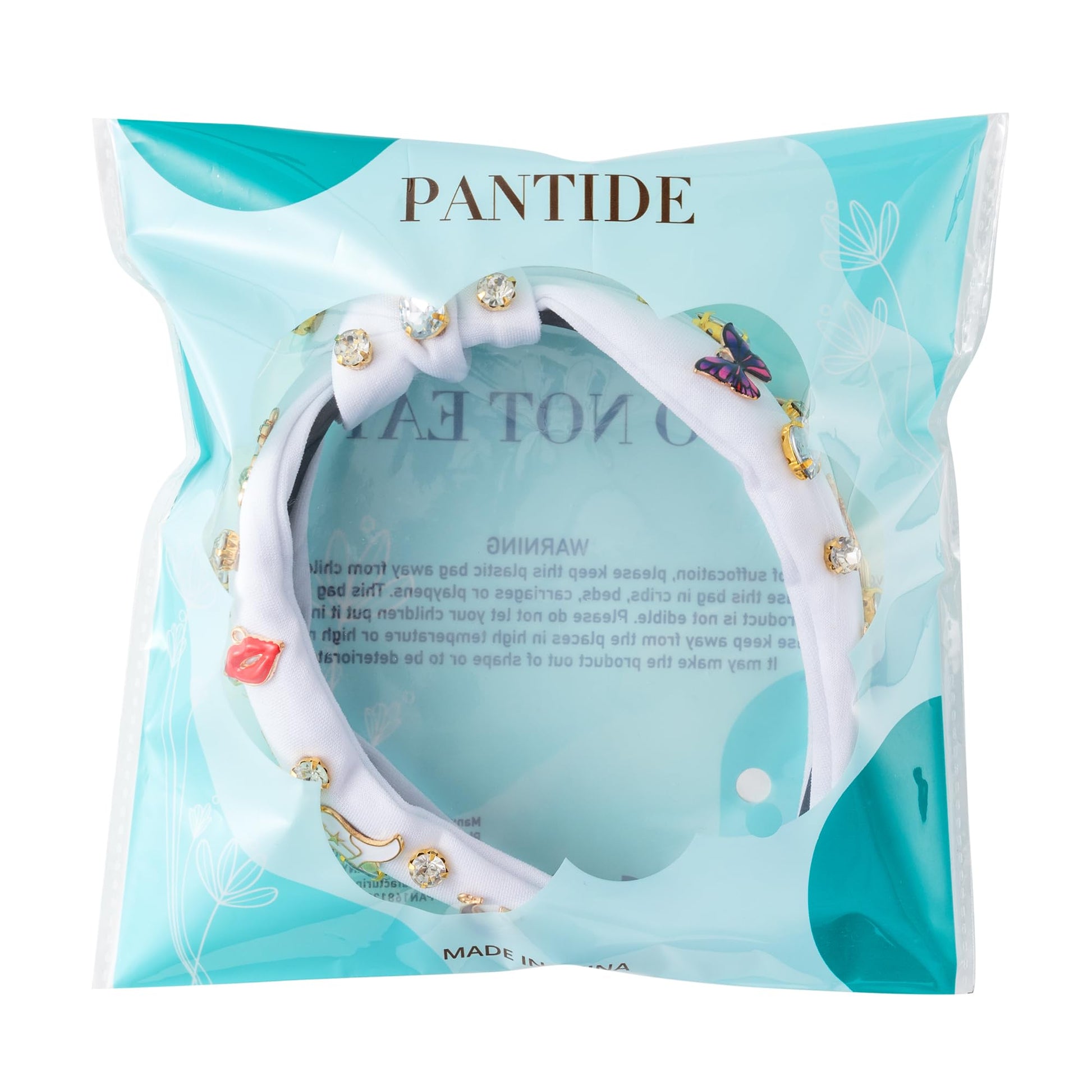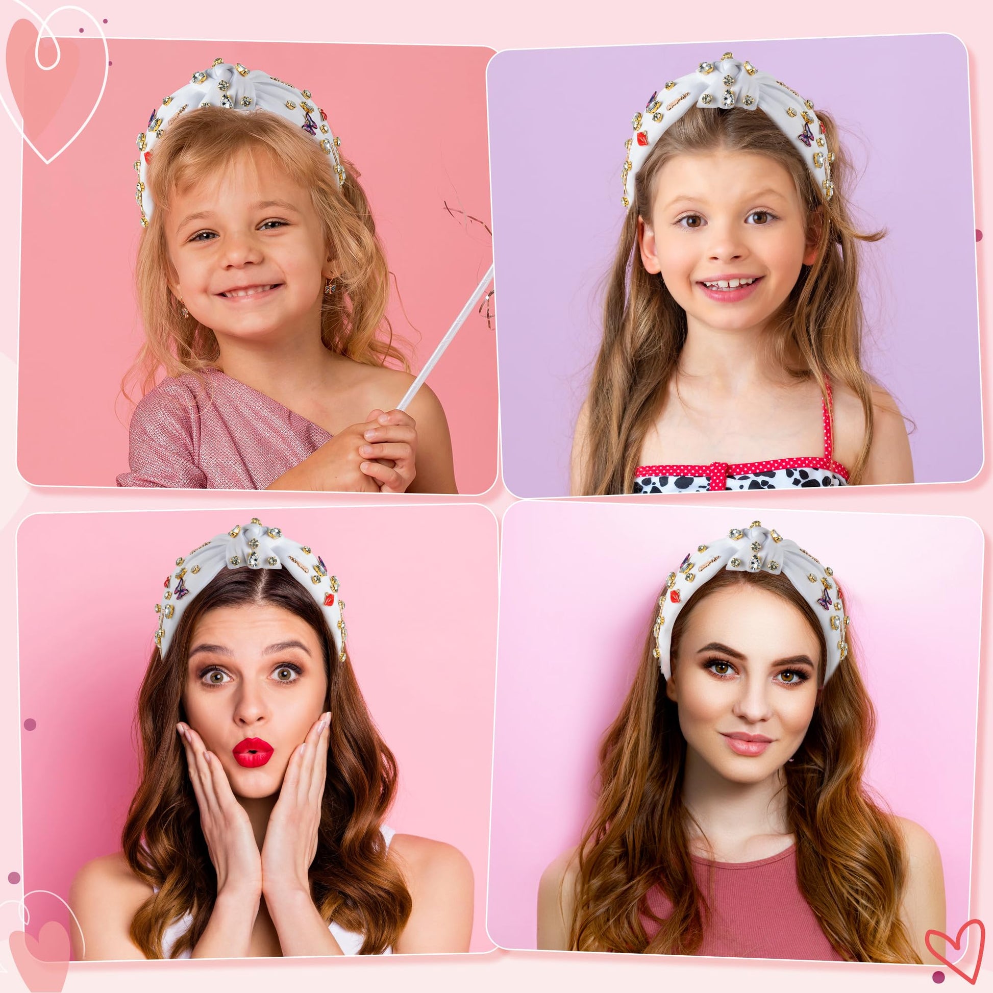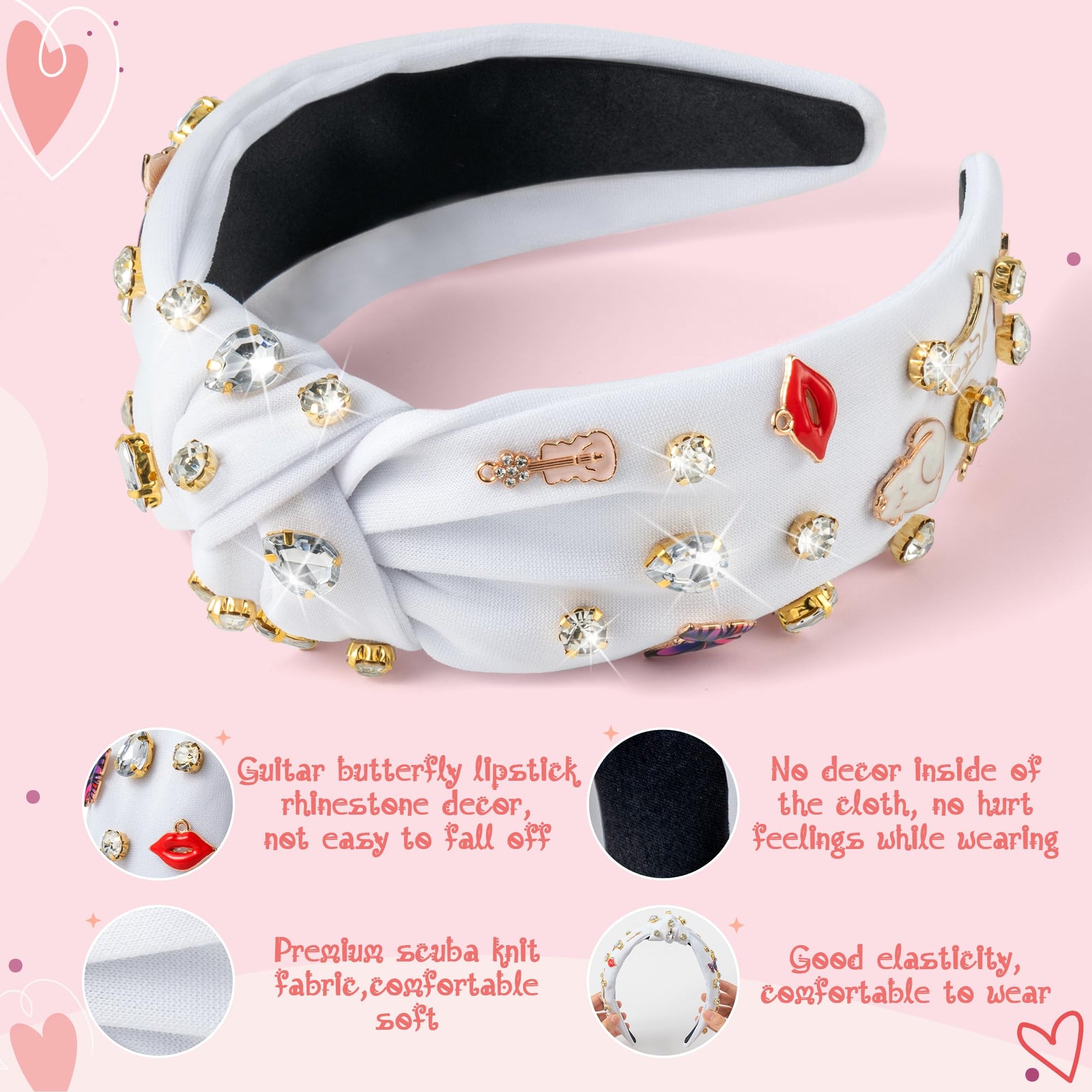 PANTIDE Music Jeweled Knotted Headband - Singer Fans Gift Guitar Red Lip Rhinestone Crystal Embellished Headband Wide Top Knot Fashion Hairband Birthday Back To School Gift for Women Girls (White)