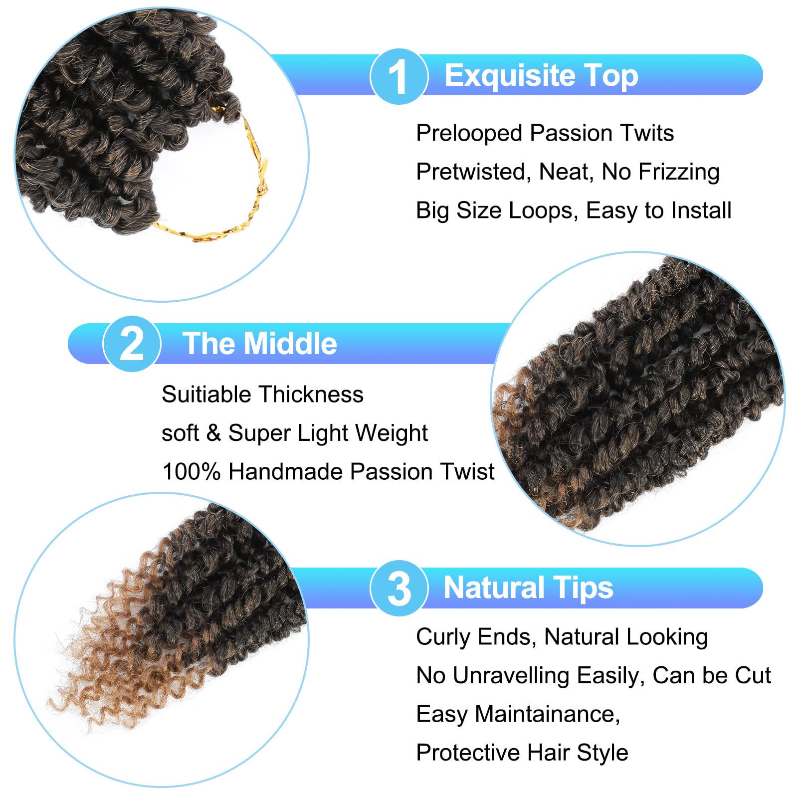 - 【Hot Hairstyle】: Popular 8inch Passion Twist Crochet Hair Pre looped, a must have messy soft crochet passion twists hair style, wear it for party, cosplay or daily use, following beautiful fashion trend.