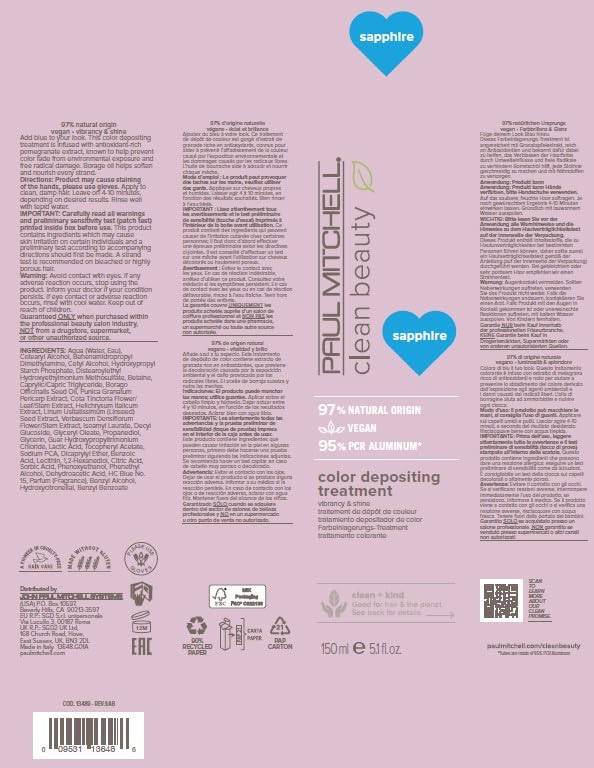 Paul Mitchell Clean Beauty Color-Depositing Treatment, For Refreshing + Protecting Color-Treated Hair, Sapphire, 5.1 fl. oz.