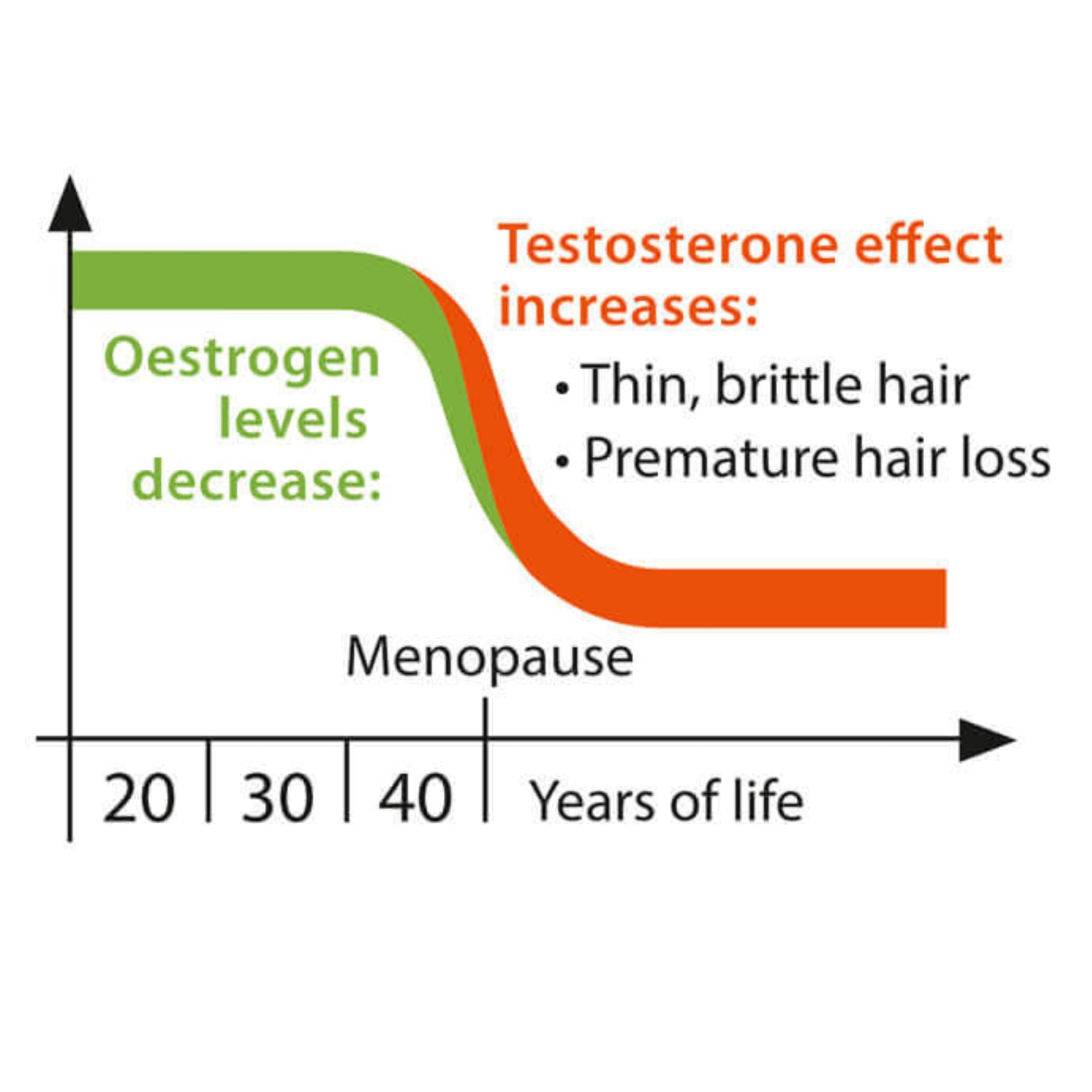 - HAIR OVER 40: Your hair might be showing the effects of menopause and changing hormone levels--including fine, brittle hair and a more visible scalp. Our Phyto-Caffeine Complex is specially formulated to strengthen this hair and promote natural growth.