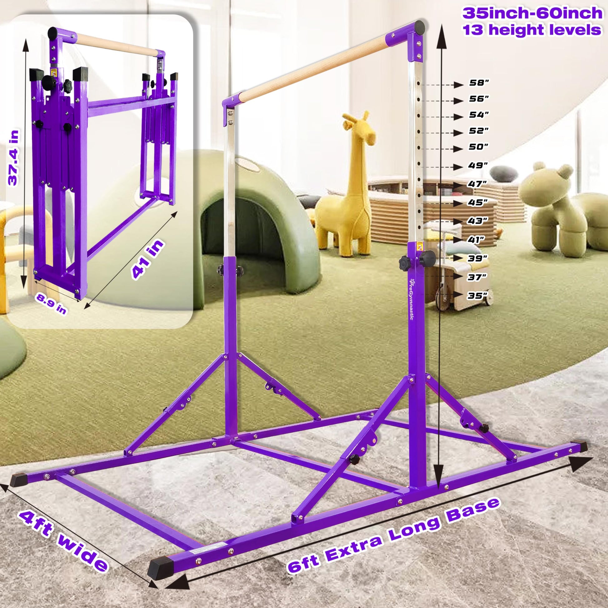 PreGymnastic Foldable Gymnastics Bar, 6FT Gymnastic Horizontal Bars, Folding Training Bar for Kids and Teenagers 3-18, Weight Limit 500 LB, Adjustable kip Bar,Children Home Gym Equipment Indoor