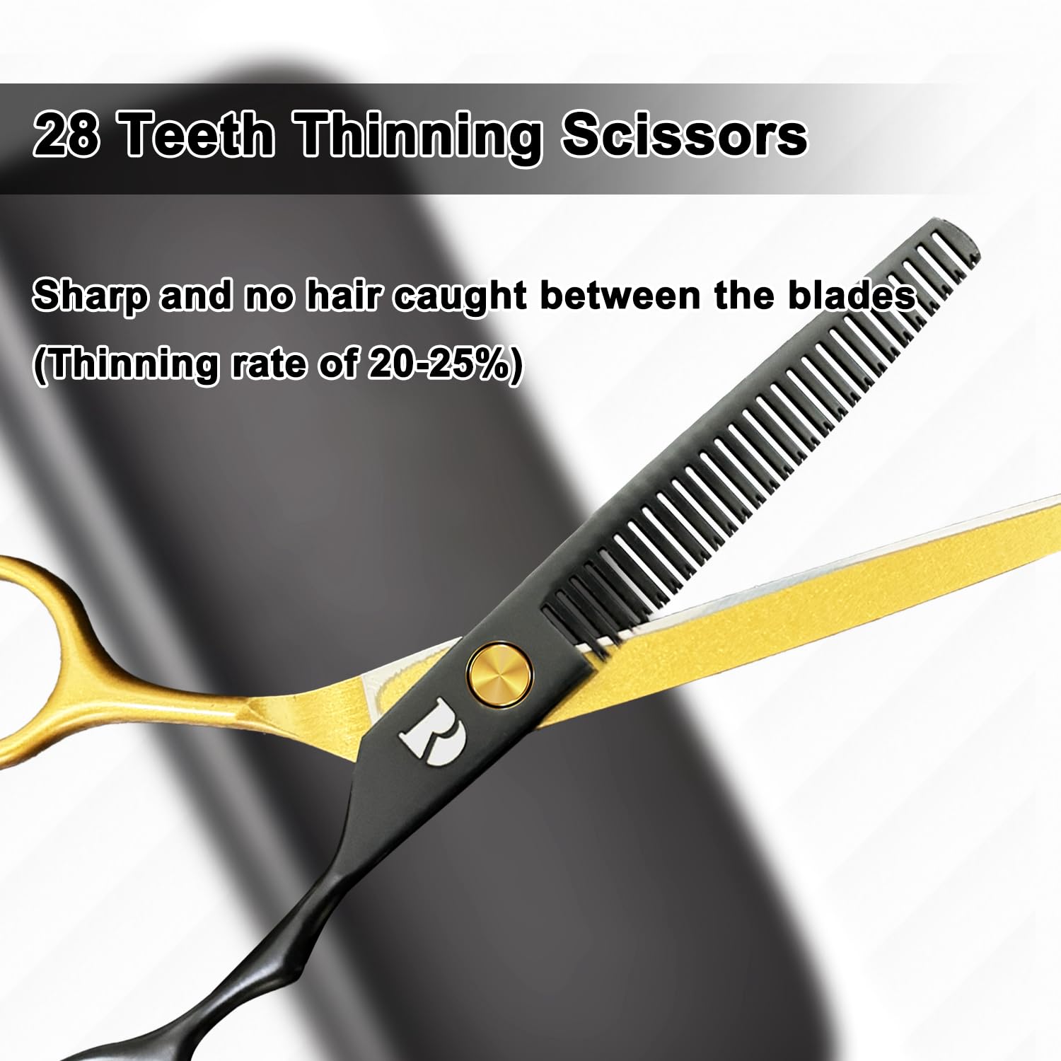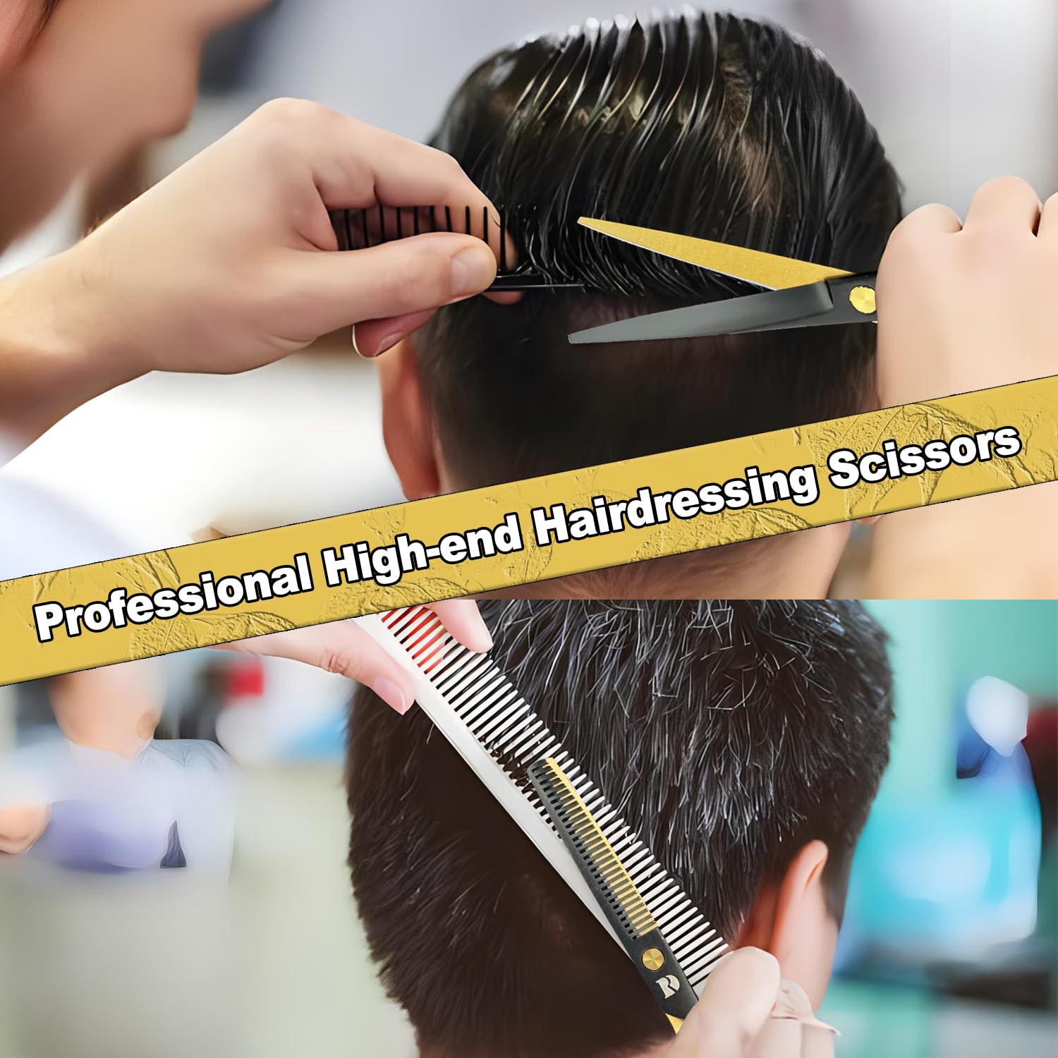 Professional Hair Cutting Shears Set,6 Inch Barber hair Cutting Scissors Thinning Shears Sharp Blades Hairdresser Haircut For Women/Men/kids 440c Stainless Steel (gold)