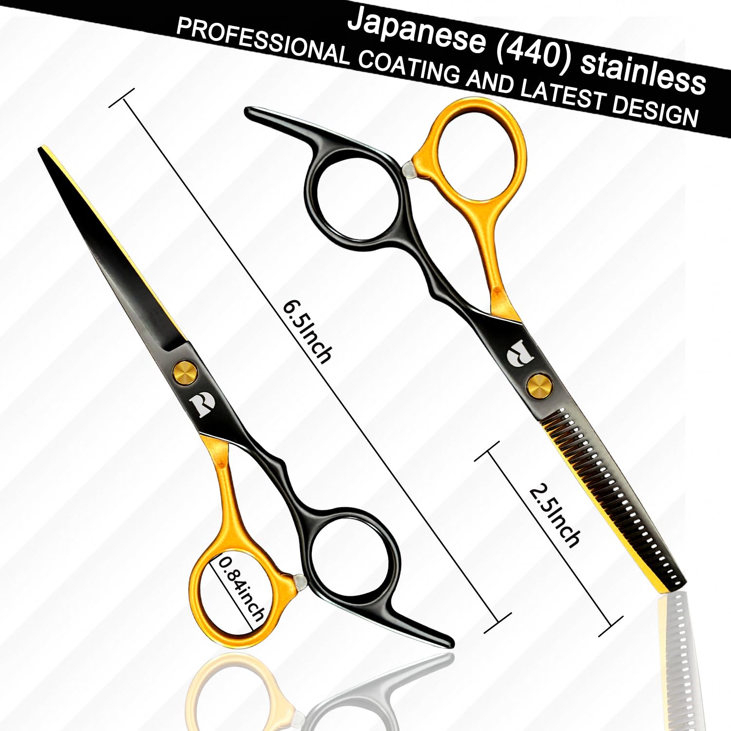 - Quality Assurance: Our hairdressing scissors kit is great For Professional hair Salon Stylist and Home use.scissors are Japanese 440c premium steel, hand-polished forging, we promise to make high-end hairdressing scissors. Our steel hardness is up to 62HRC, and the wear resistance is good, so that the scissors can still be used for decades under high-intensity work.