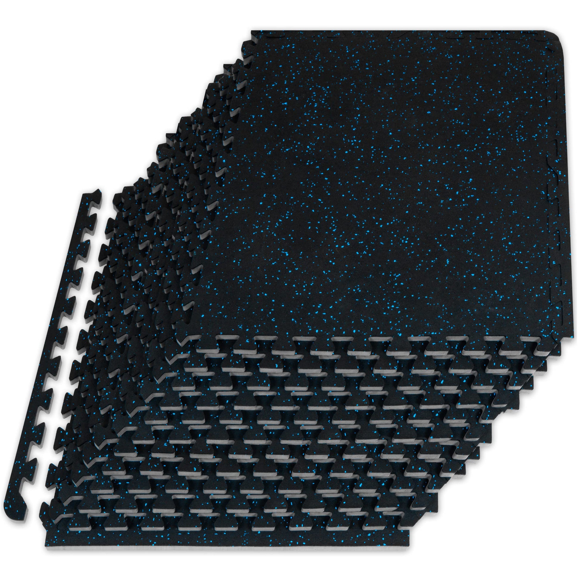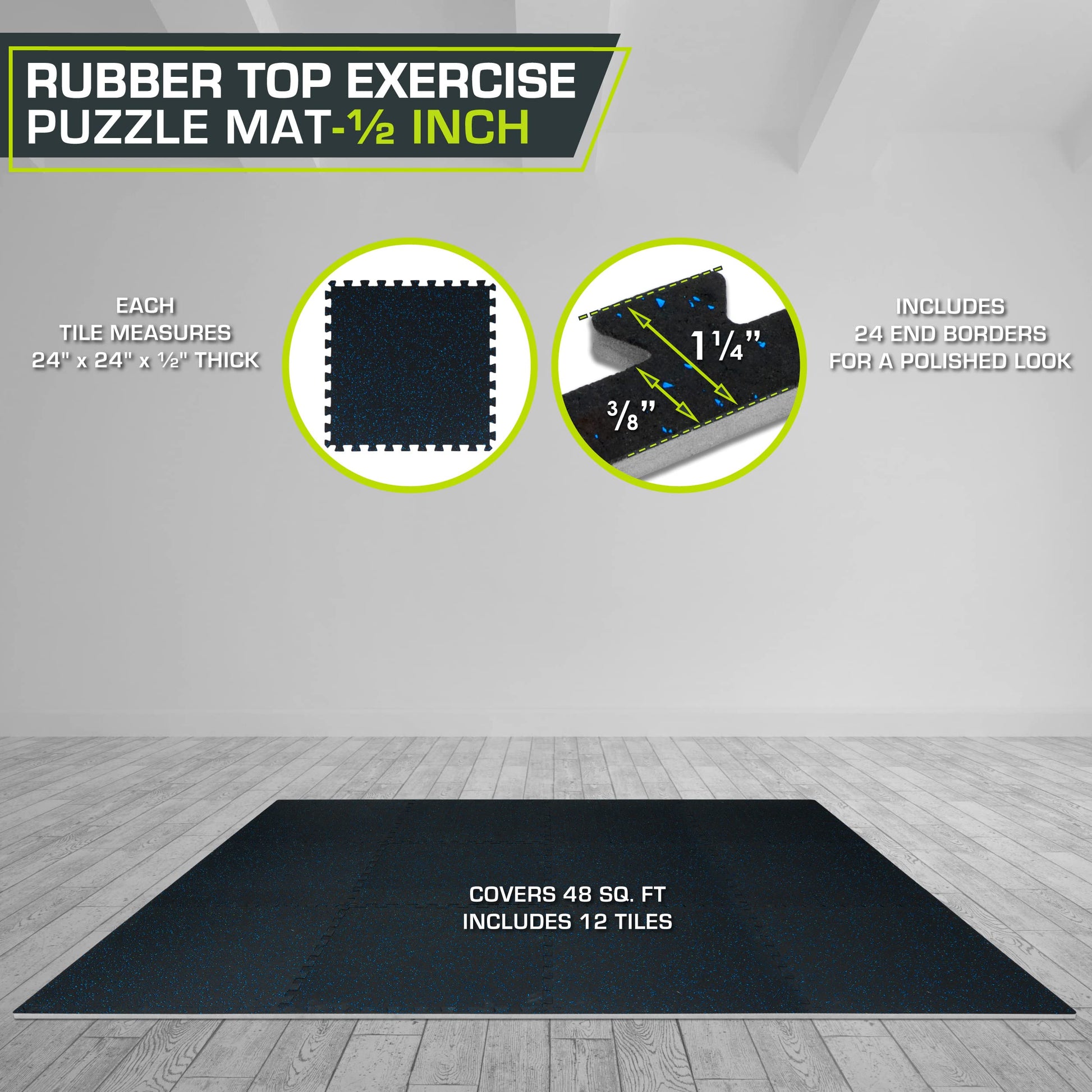 ProsourceFit Rubber Top Exercise Puzzle Mat ½-inch, 48 SQFT, 12 Tiles, EVA Foam Interlocking Tiles for Home Gym Protective Flooring for Equipment and Workouts, Blue