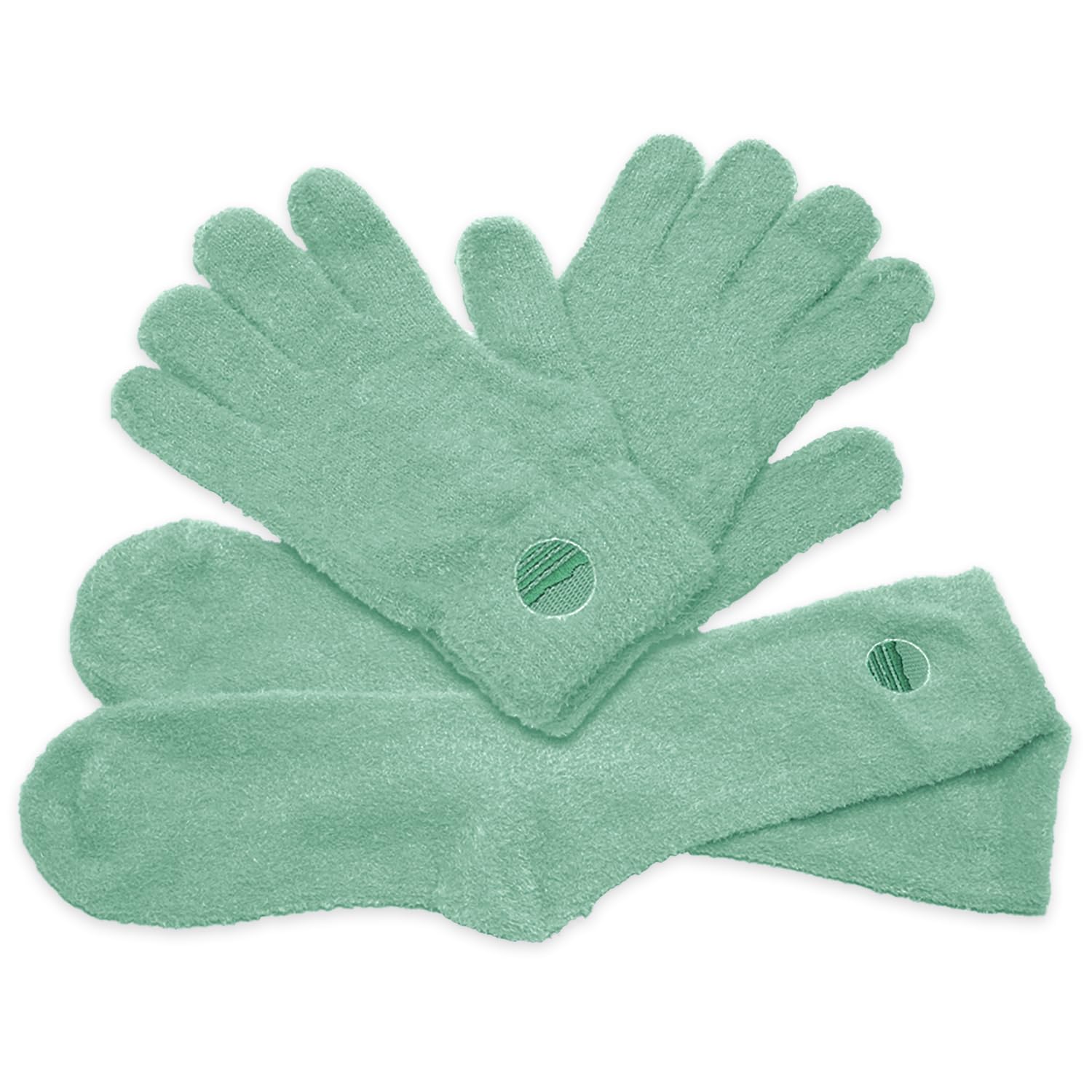 - πππππ πππππππ πππππππ: Enjoy a manicure and pedicure spa treatment at home with these plush, comfy teal socks and moisturizing gloves. Infused with aloe vera and vitamin E, they are made with high-quality 98 percent polyester and 2 percent elastane. The ultra-soft, cozy material provides a luxurious and relaxing experience, and the stitched heel ensures a better fit.