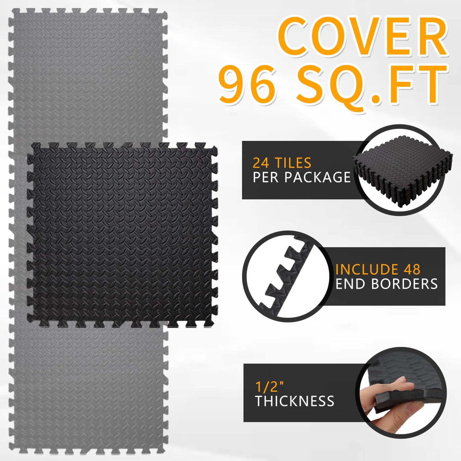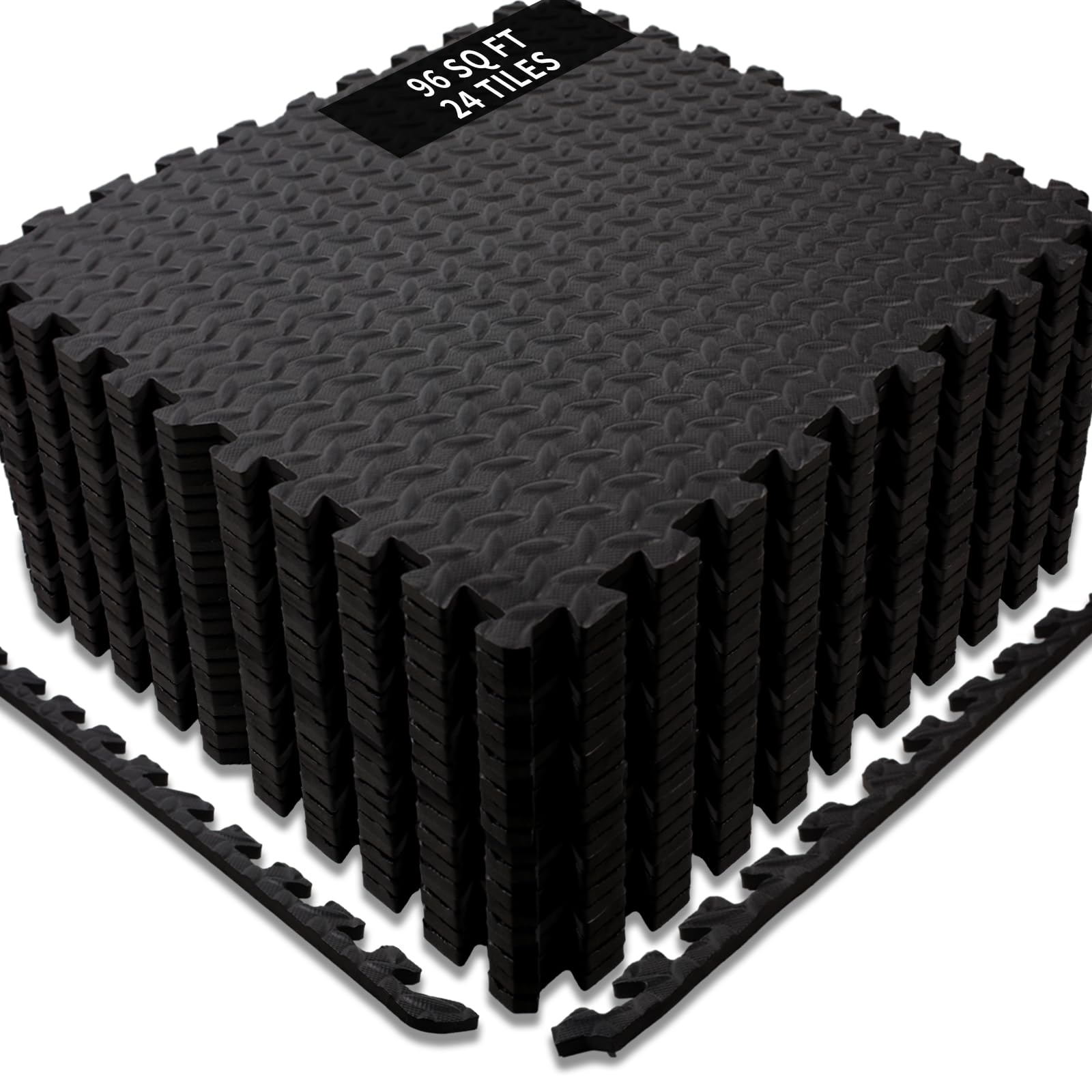 Puzzle Exercise Mat ½ in Thickness, 24 Tiles EVA Interlocking Foam Floor Tiles for Home 24'' x 24'' Protective Flooring Mats for Gym Equipment Covers 96 SQ FT